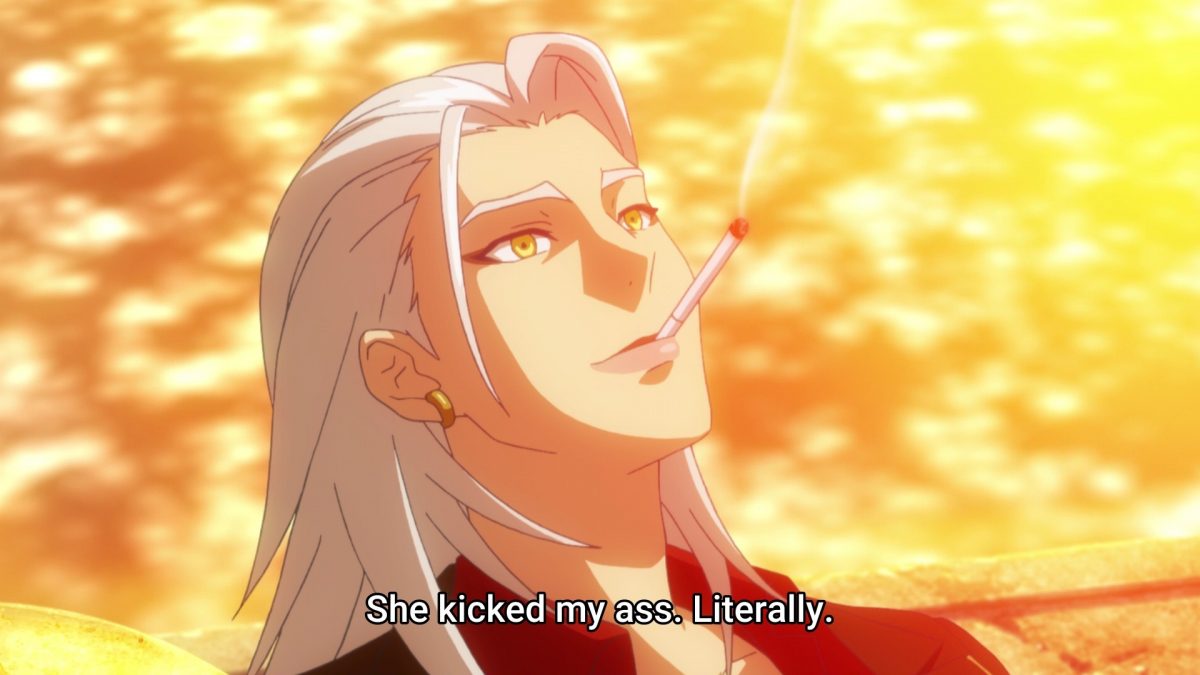 BIRDIE WING finally moved to Japan. Will we get slice-of-life now? Did we need to spend eight episodes on the dark backstory of the mysterious transfer student? The answer is yes because Bandai Namco wants to show an anime about the world behind a golf video game. The funny part is how Eve reacts to the lower stakes of high-school-age rivalry. She dodged mafia hits and handled suitcases of cash. An inter-high golf championship is a mere blip to Eve’s attention if Aoi doesn’t show up.