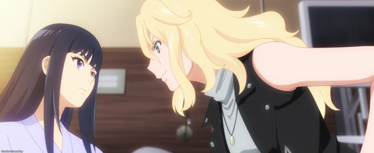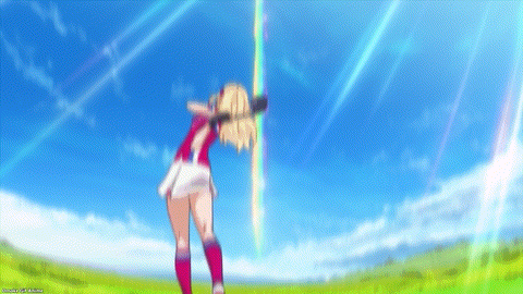 Eve, the Ringer. That’s how the golf girl played pro golf before — as an impersonator. We saw that in the first Golf Girls episode. Why should we be surprised Eve can mimic Aoi’s Shiny Wings? But at that time, Eve was impatient and almost gave away her ruse by playing in her own style. Fast forward to today, and we can see how much Eve has matured in BIRDIE WING. She slowly accustomed her swing to Aoi’s long shaft driver and then unleashed her version of Aoi’s Shining Wings. I would have preferred to see a kiss on the cheek for Aoi, but the combined superpowered swing was the metaphorical golf sex scene we’ve been waiting for. Yuri lily flowers bloomed!