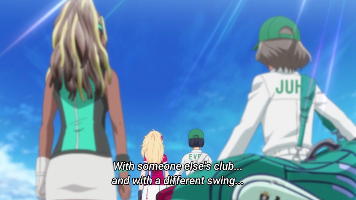 Second, the Golf Girls’ story dangled the promise between Eve and Aoi of playing golf together for too long! On the bro side of golf rivalries, Leo and Kazuhiko tied their rivalry up at three apiece. But Eve and Aoi never played against each other for eighteen holes in real life. The fun costumes of the virtual reality episode didn’t make up for that. Plus, Eve’s motivation to play against Aoi’s score was a repeat of how Eve played one round in Aoi’s Under-15 tournament in Nafrece. The writers ran out of ideas to keep the star-crossed golfers apart.