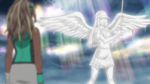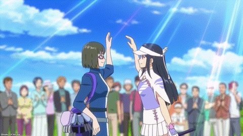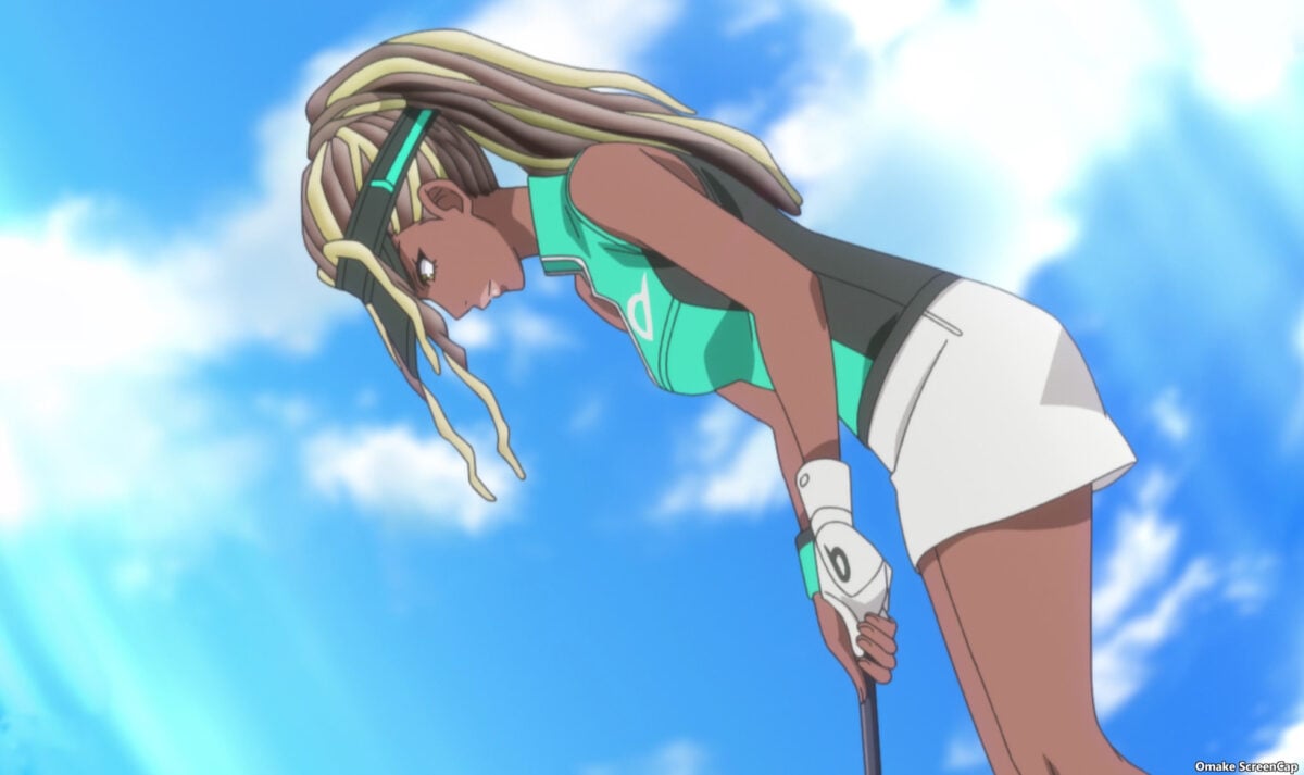 Eve is paired with a “Siera Daniel,” tied for fourth with three others. How do the golf officials decide which of those four plays in the second group? Will we even see what she looks like? Aw. Eve’s family is in the grandstands. Finally! It looks like Eve saved her bullets for the final rounds of golf. First up, Rainbow Bullet Burst! Eve and Aoi shoot through each other’s hearts. It’s not intimidation anymore but encouragement. I like this Juha lady because she’s envious of their rivalry. BIRDIE WING is done with the cheating schemers of underground golf. We have monster golf on the screen now. Hey! Aoi yelled a name for her golf swing like Eve usually does. Shining 48! Aoi can handle long shafts all day and night.