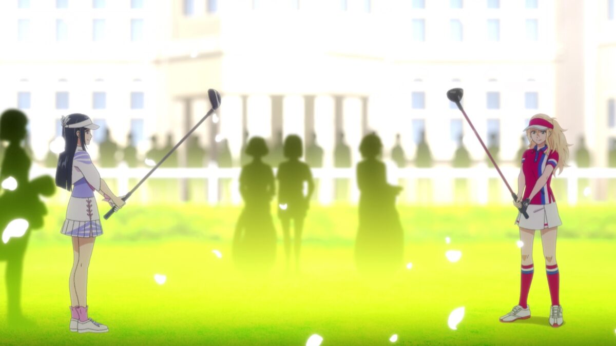 Quite the cliffhanger! Next time, the golf girls make more promises. I don’t understand the preview scenes. Ichina and Amane are in casual clothes instead of caddy gear, but the gallery cheers along with them. What are they watching? The season finale, of course!