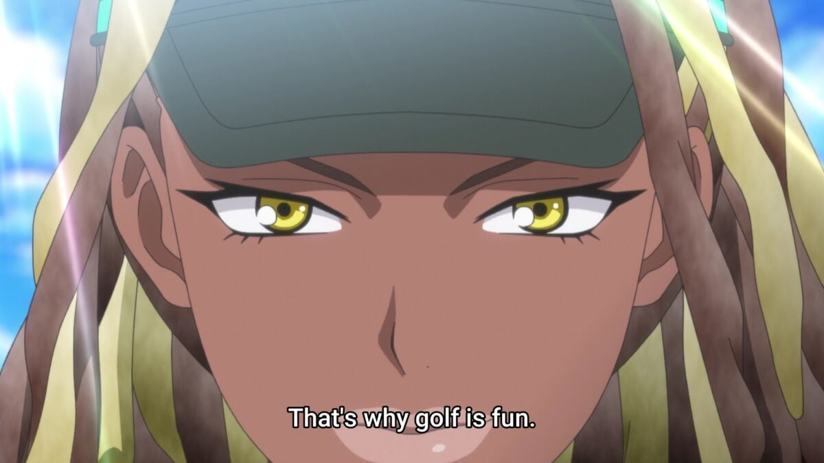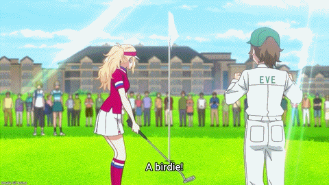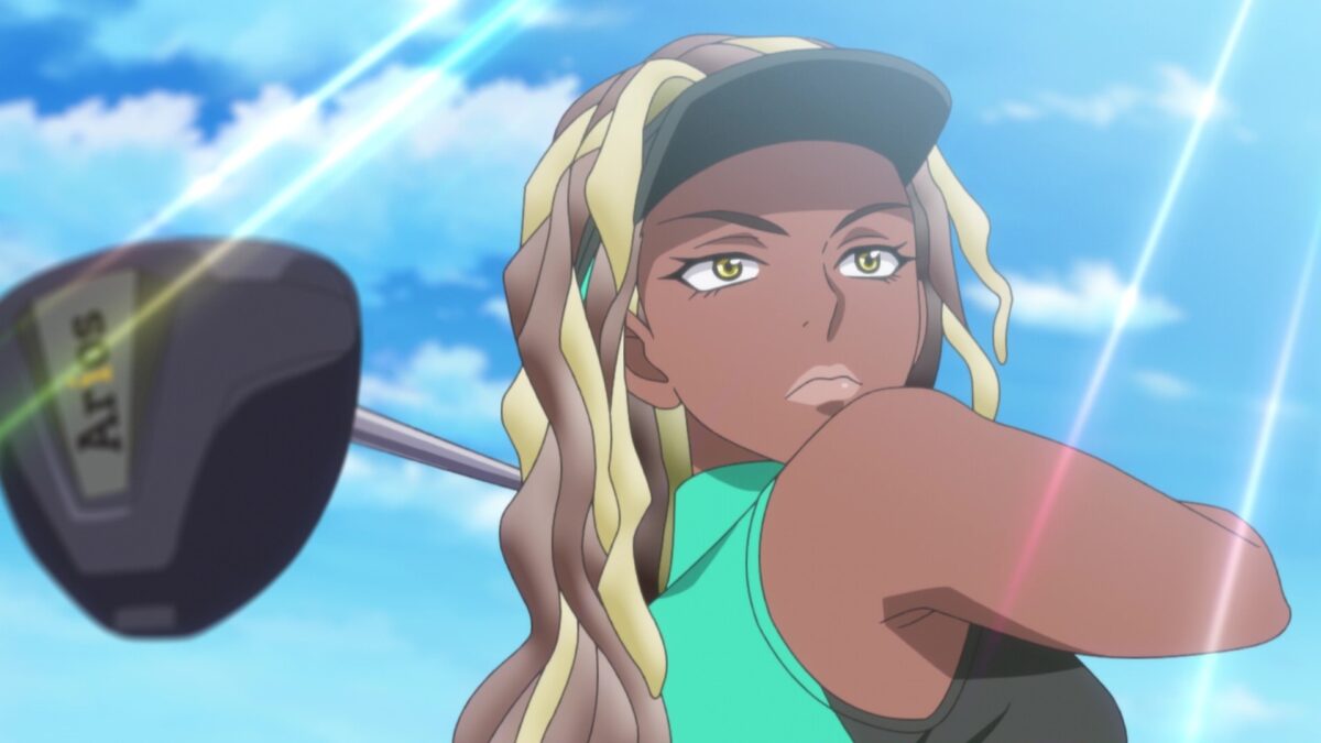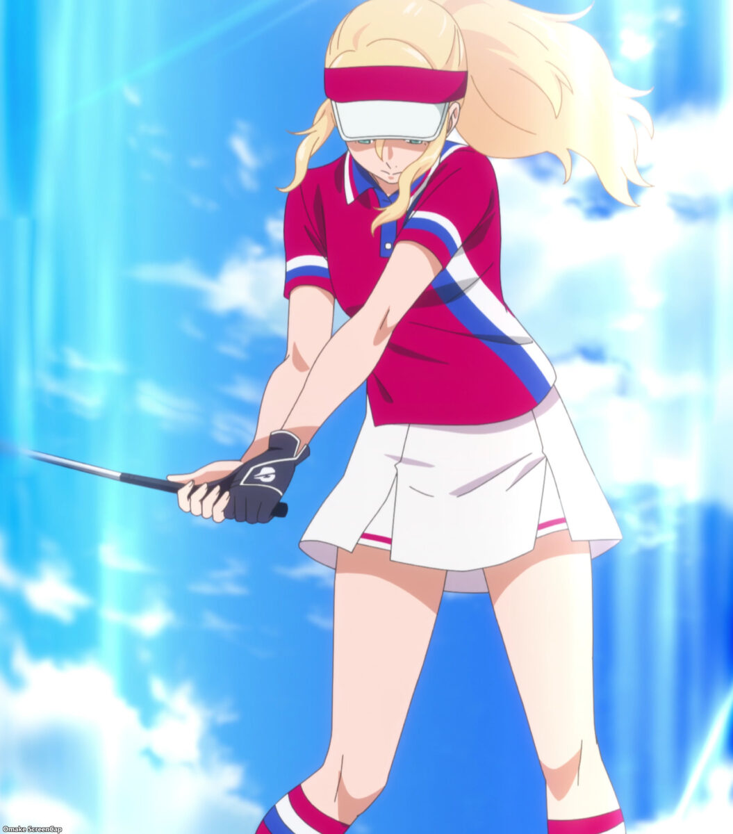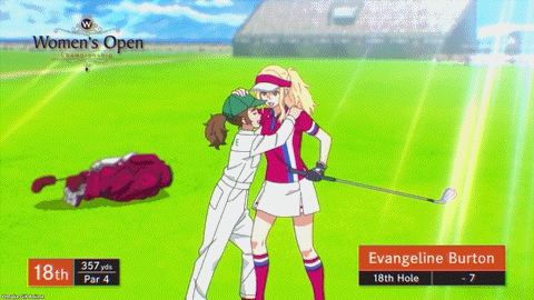 A training montage for Eve wets the palate for watching her improved golf techniques. The top three on the leaderboard, Eve, Aoi, and Juha, trade birdies and eagles. I didn’t hear Eve yell about her colored bullets. BIRDIE WING didn’t show bullet colors either. Is Eve playing pure vanilla right now? Hoo boy. The St. Annlies golf course has such harsh conditions that Reika, the top Japanese women’s golfer, didn’t make the weekend cut.