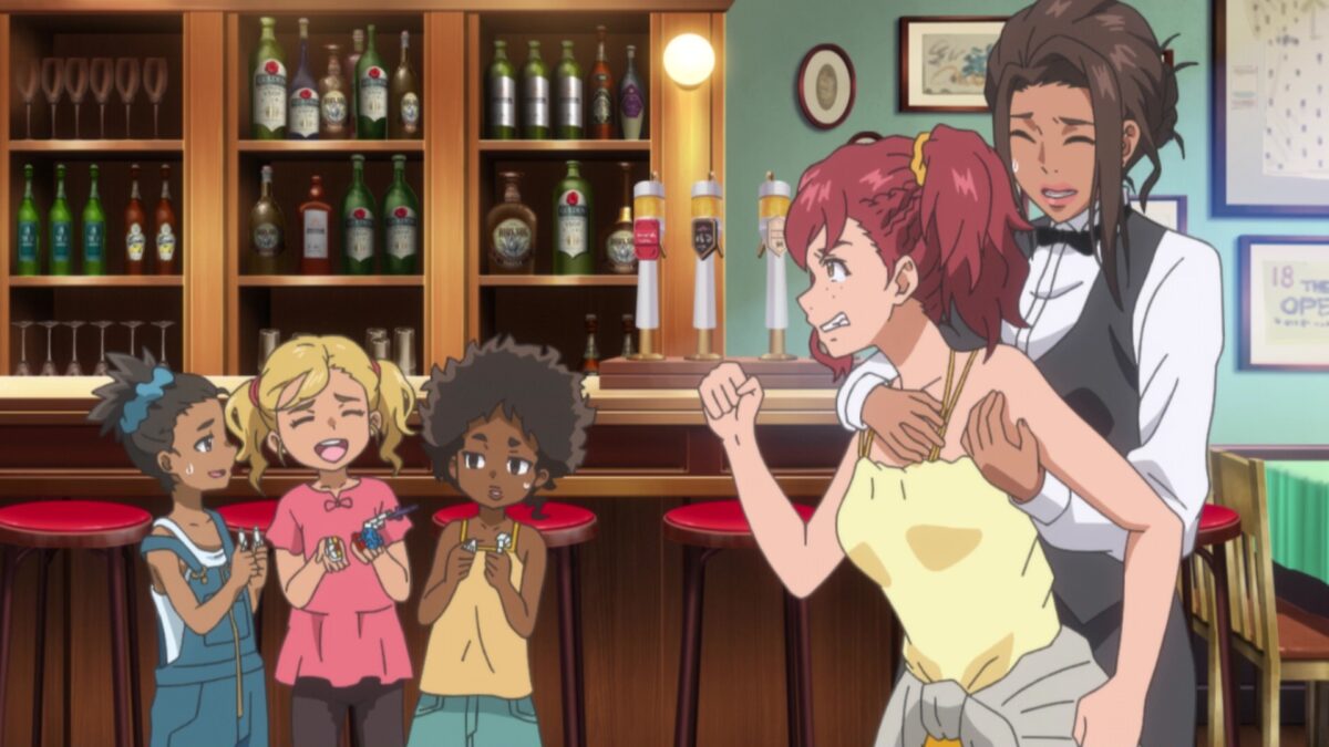 Last week’s events were so shocking that BIRDIE WING gave us a recap! Short recap because Seira kidnapped Eve! When Aoi’s mother makes up her mind, she acts quickly. Ooh. The Arios logo is on the golf ball in the opening credits. That’s Leo’s brand! Did Eve enjoy her chloroform nap? Yes, we are all after Eve’s body. Thanks for playing golf in Japan. Now, get out. Sweep the leg! We just got a reminder that Eve grew up on the mean streets of Nafrece playing underground golf. Ack. Eve’s quest to play golf against Aoi added a side quest. No problem. Eve will become a pro golfer first. Then, hamburgers!