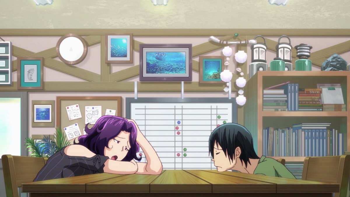 Sakurako picked up on Chisa’s loner instincts and suspected the younger sister had a complex about how outgoing Nanaka was. The tsundere identified these issues after only one day with the staff of the Grand Blue diving store. And so, to lift herself up, Sakurako attempted to bring someone else down. And it worked! Chisa would never have drunk herself into a rip-snorting stupor without Sakurako’s prodding. The mean girl has a longer road ahead on her redemption tour. And Chisa should learn to overcome her aloofness and shyness without resorting to binge drinking. Or, at the very least, practice first. We already know how much liquor Nanaka can hold!