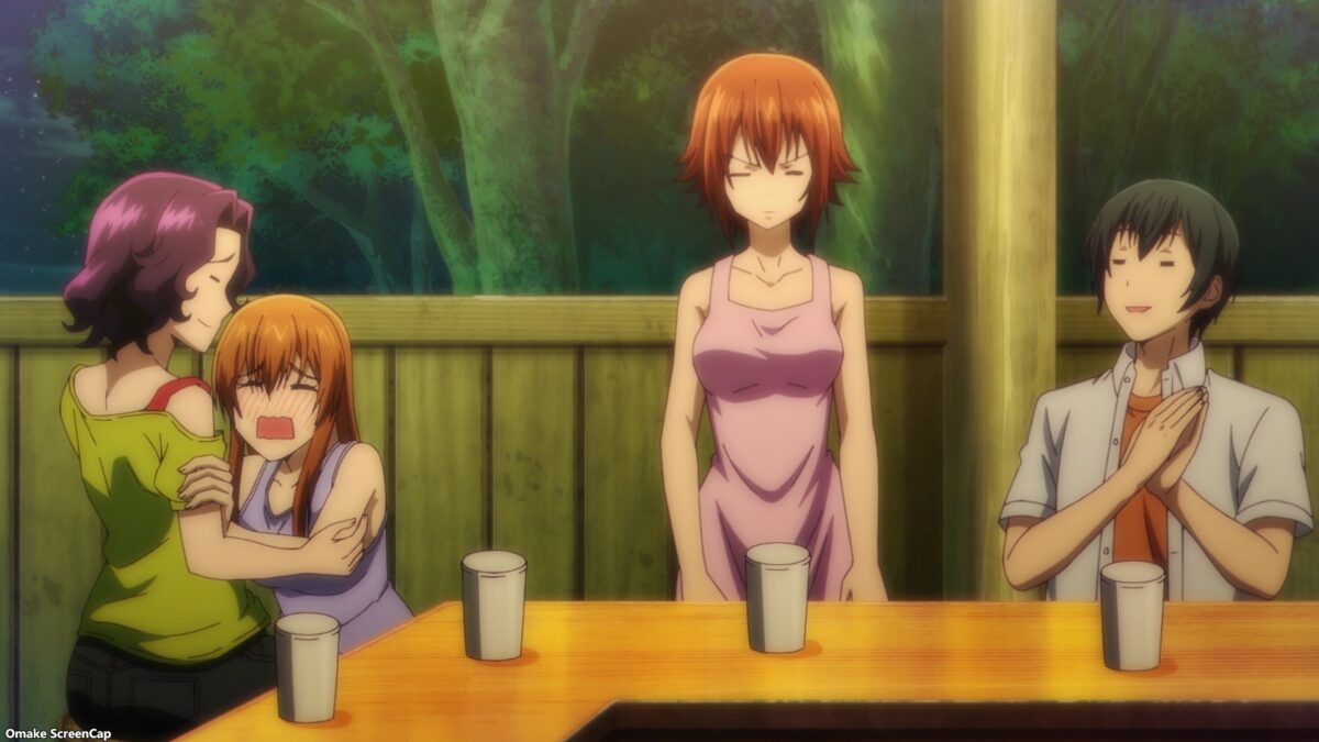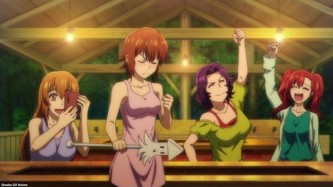 Whoops. Sakurako just learned Iori has a “girlfriend.” Keep your eyes on the prize, Tinkerbell. Its members want to hang out with Peek-a-boo’s women. They suggest a drinking contest. Big mistake! Ack. Sakurako and her friends goaded Chisa into joining the drinking games. Drinking postponement! It’s time to catch food for campfire cooking.