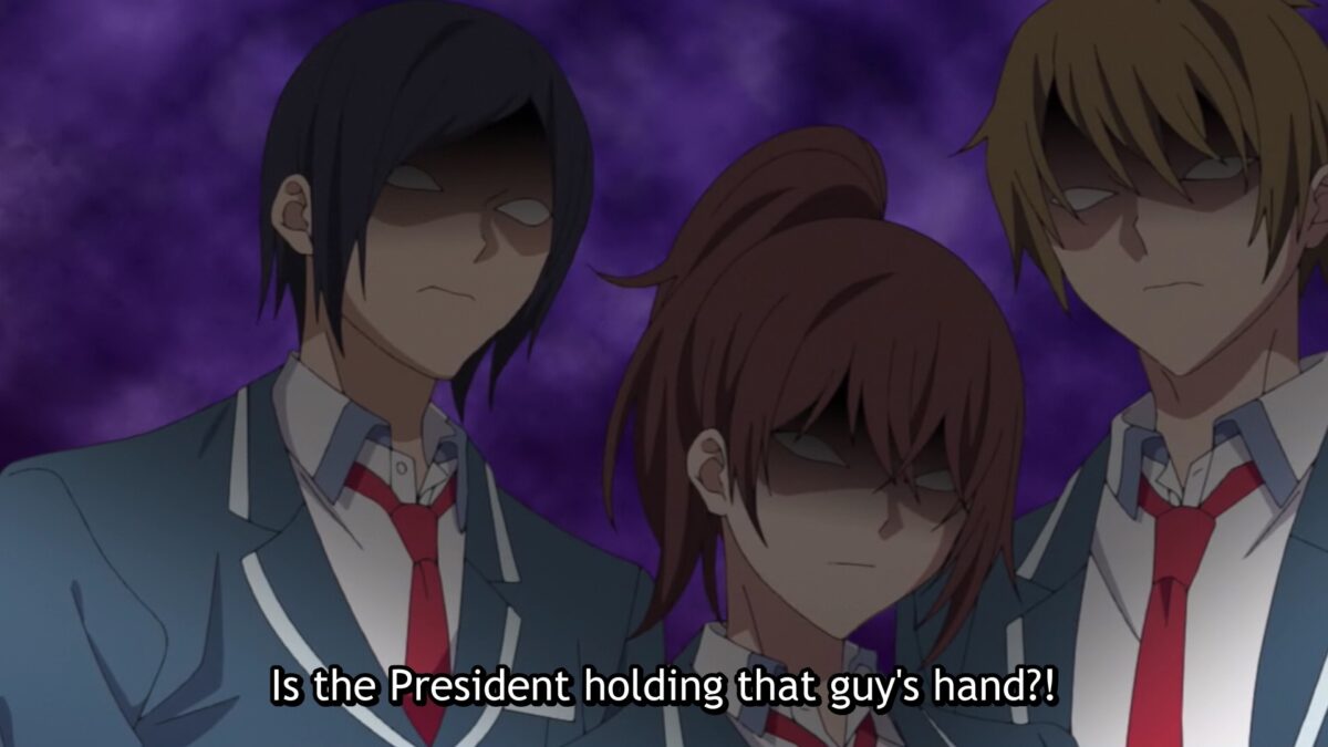It’s festival day! Koushi and Takane’s class has time before their dress rehearsal before they perform Cinderella in front of the public. The kids have enough time for fun and to tour exhibits and booths. Oh? Foreshadowing. Prince Charming hasn’t arrived at school yet. Takane still has eyes only on Koushi, though. The kid is nervous and needs something to take his mind off stage fright. How about a personal tour with the school president? Oof. Takane’s fans don’t like how she’s holding some cipher’s hand.