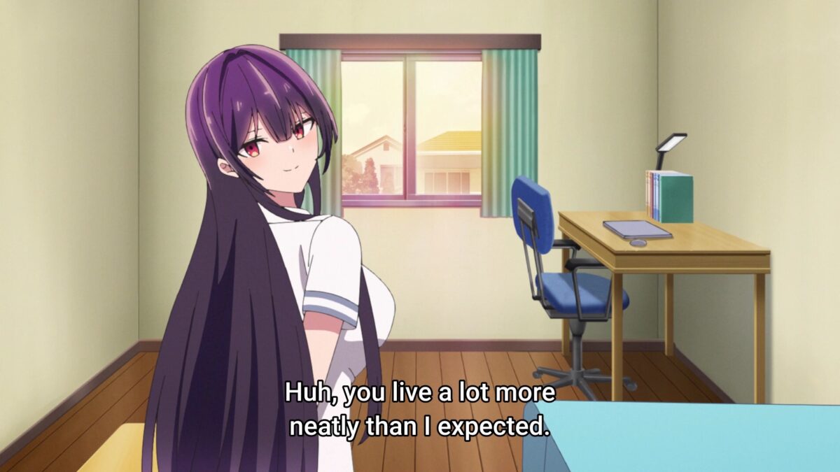 We already knew from the first episode how well she knew Koushi. But he mysteriously treated her as a high school celebrity he had never spoken to. The home visit for a sick classmate revealed a cat that still lives with Takane. I’m curious about that cat’s reunion with Koushi. How will he react to “Kuro,” who recognizes him, but he does not? It appears that the goal of Takamine-san is to reunite childhood friends. Let’s see it happen with pokey nipples and peekaboo lingerie!