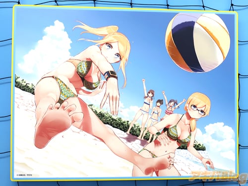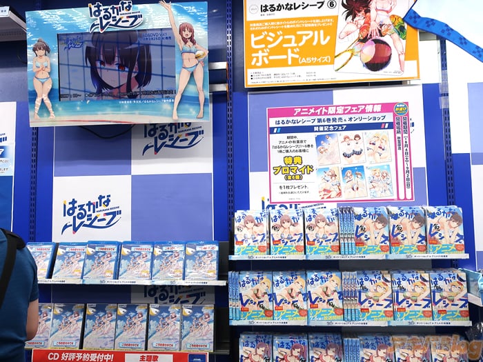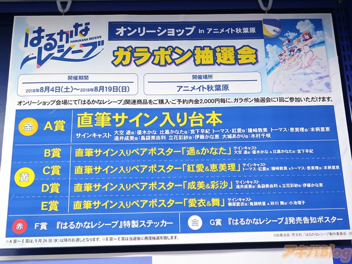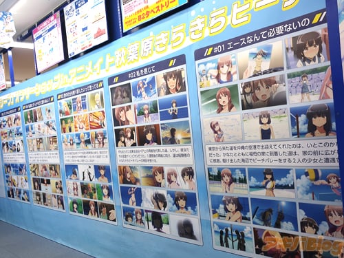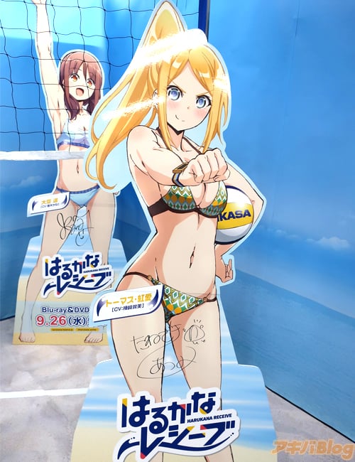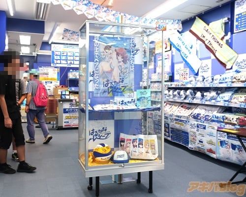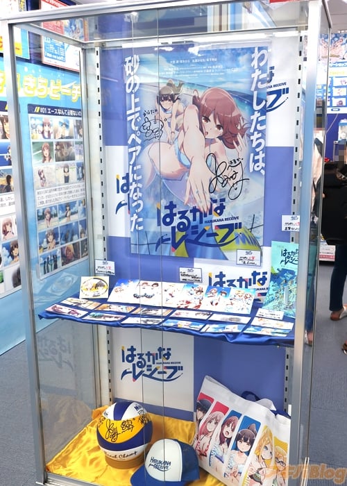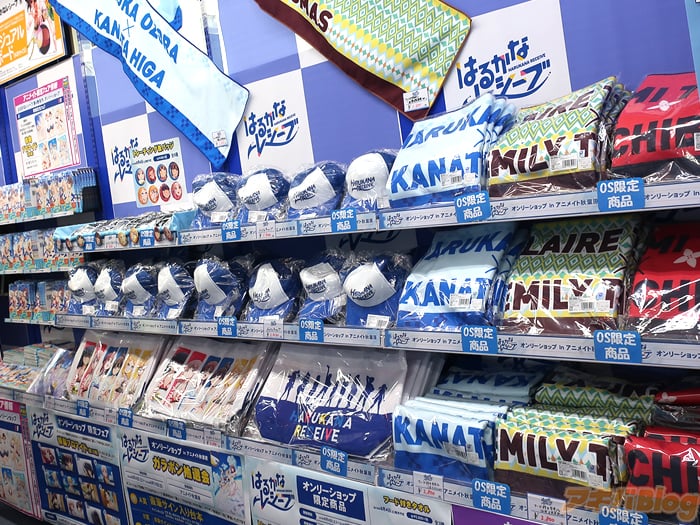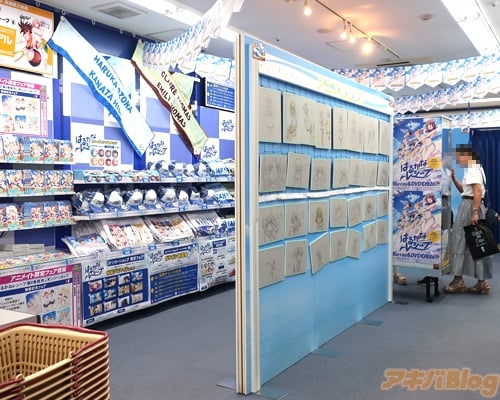 The whole store has been renewed to represent the theme of the series with character cardboard cutouts signed by the voice actors, illustrations, posters, and key frame art lining the walls, a beach volleyball signed by the voice actors, and limited items you can only purchase from the store.