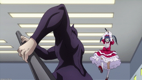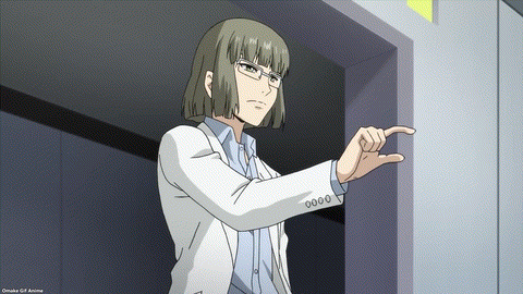 Archangel is a true chuunibyou. He’ll adapt anything to a formulaic light novel plot. Doctor God-Candidate is now an evil scientist in High Rise Invasion, according to Archangel. Aw. Aohara misses Zwei Mask. She’s only been gone since this morning. Now’s the time for Doctor Aohara to use his mask freezing power. Got him! Can Aohara do it again? Ack. Archangel will “shoot” him with Sniper Mask’s bullet. That’s tight writing. Ein’s shortened sword can’t catch the bullet! Tighter writing! That’s not good for the doctor. People die in this show and his number is up. The only one who could save him is himself. Isn’t it ironic? No, High Rise Invasion, that’s bad luck.