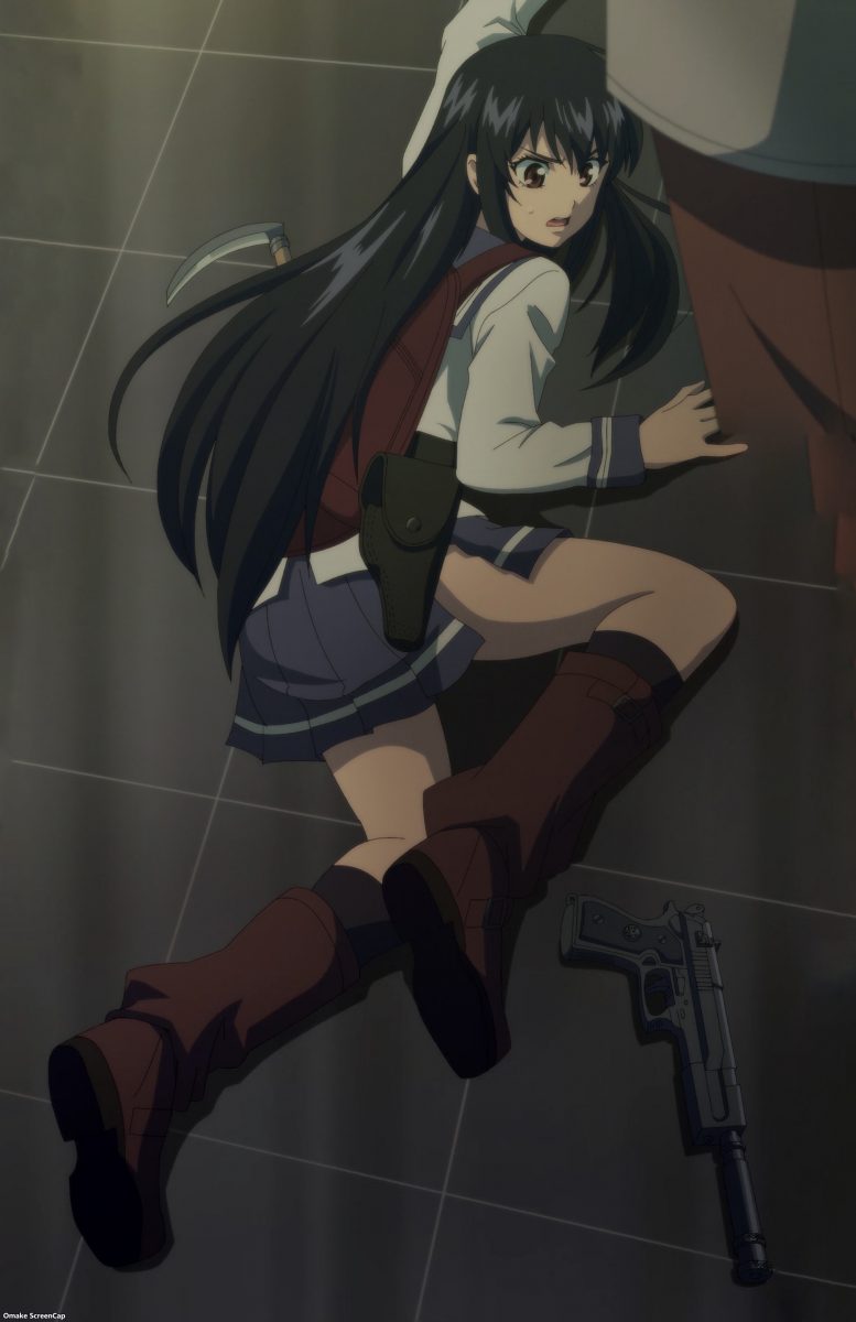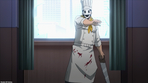 Ahahahaha! Jump scare with Chef Mask! So well done after all the good vibes in High Rise Invasion. Ugh. Chef Mask still has his memories. He loves necks. Cutting them, that is. Chef Mask claims his mask has a defect where he can hear the Commands, but he does what he wants. And the Mask gave him “abilities.” I’d like to know more about how that stuff works. Mayuko says, “Bring it.” Okay, how about a bag of heads, then? I’m glad we saw that short flashback of Mayuko’s terrible orphanage experience, otherwise that trauma and guilt she feels for surviving would be out-of-place character development. Blam! Yuri ex machina! I like how she remembered to take her sock off to make sure her foot doesn’t slip out of her improvised snare. Also, it’s a gift for feet fetish fans… Mayuko called Yuri a god, so the “Angels” need to deal with her now, right?