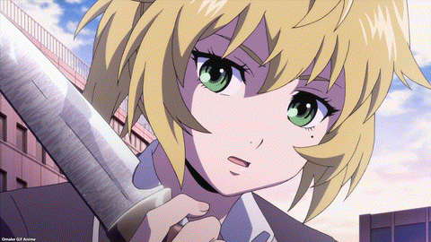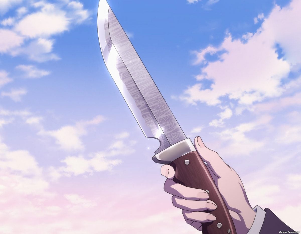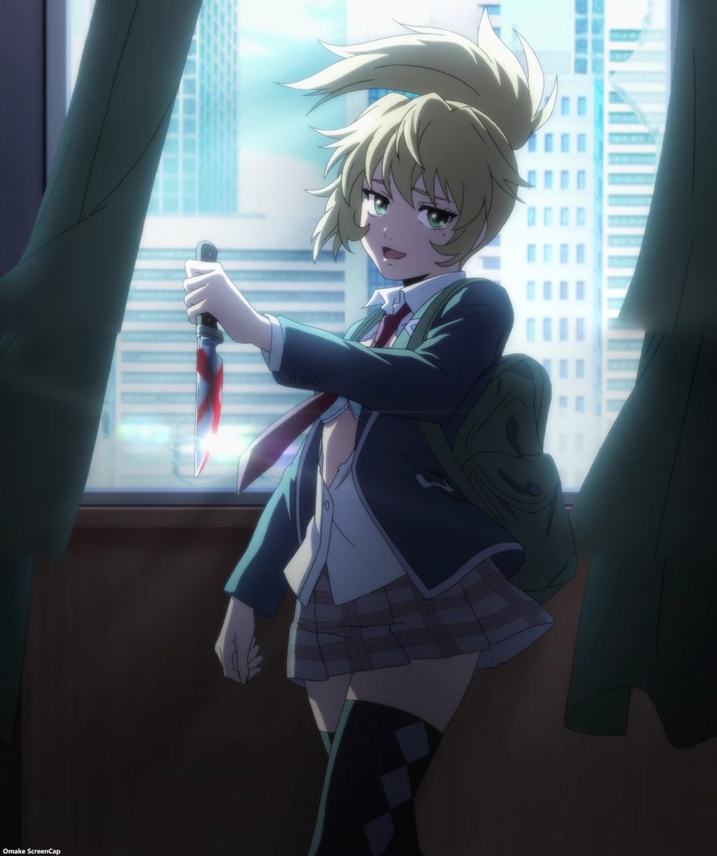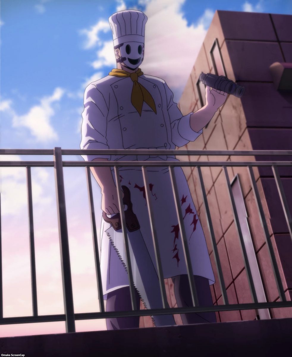 Ah. It’s time for High Rise Invasion to set up violence and gore. The Chef Mask carries around binoculars, a handsaw, and a bag full of bloody body parts. He’s the Big Bad according to the Netflix splash screen. This guy didn’t lose his personality at all after putting on a mask. Insane cannibal is hardly Angel material, but he’s there to “bring people closer to God.” One way or another… Hoh. Rika “gave” Yuri to Mayuko for protection. It’s like they’re engaged now!