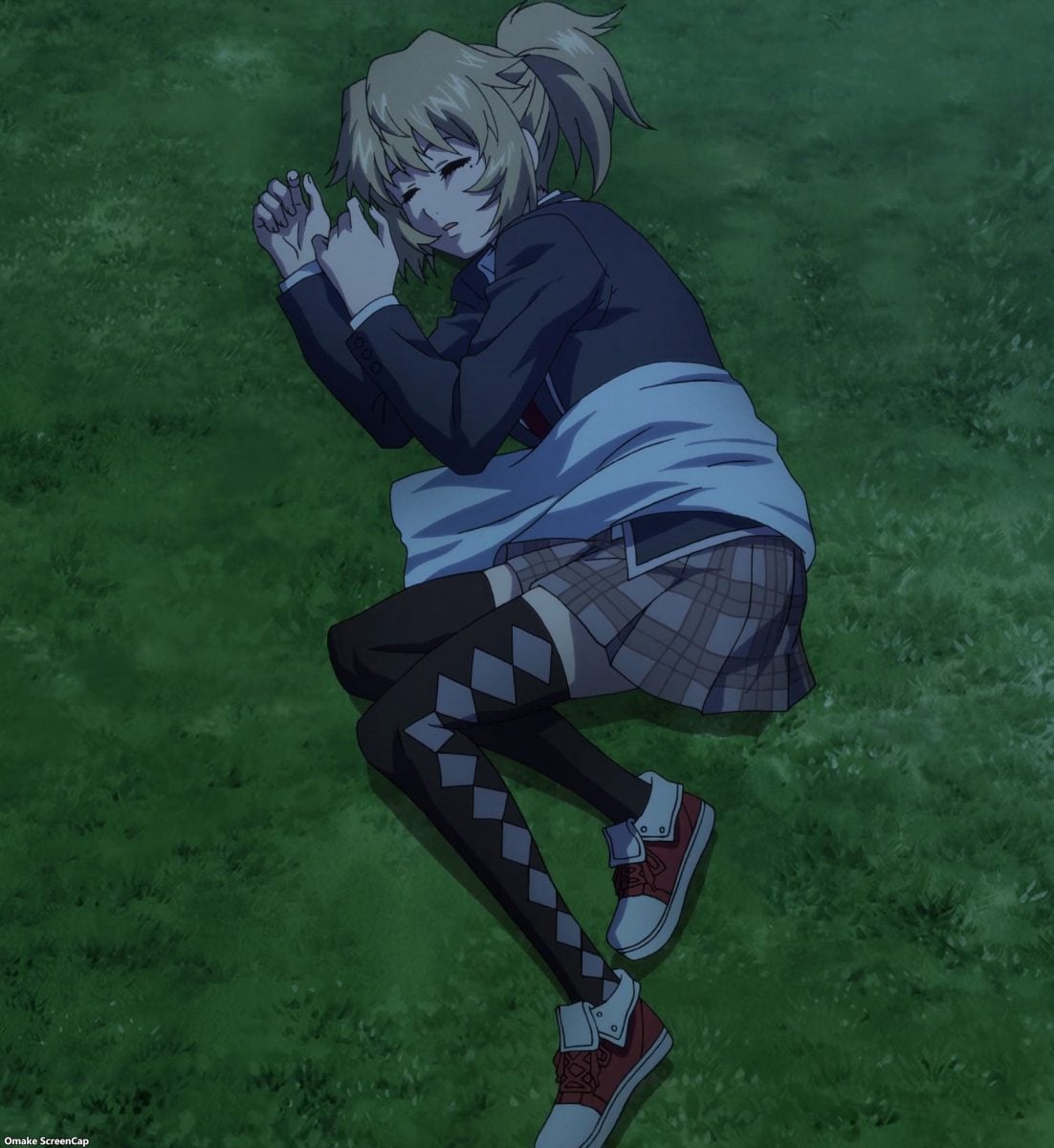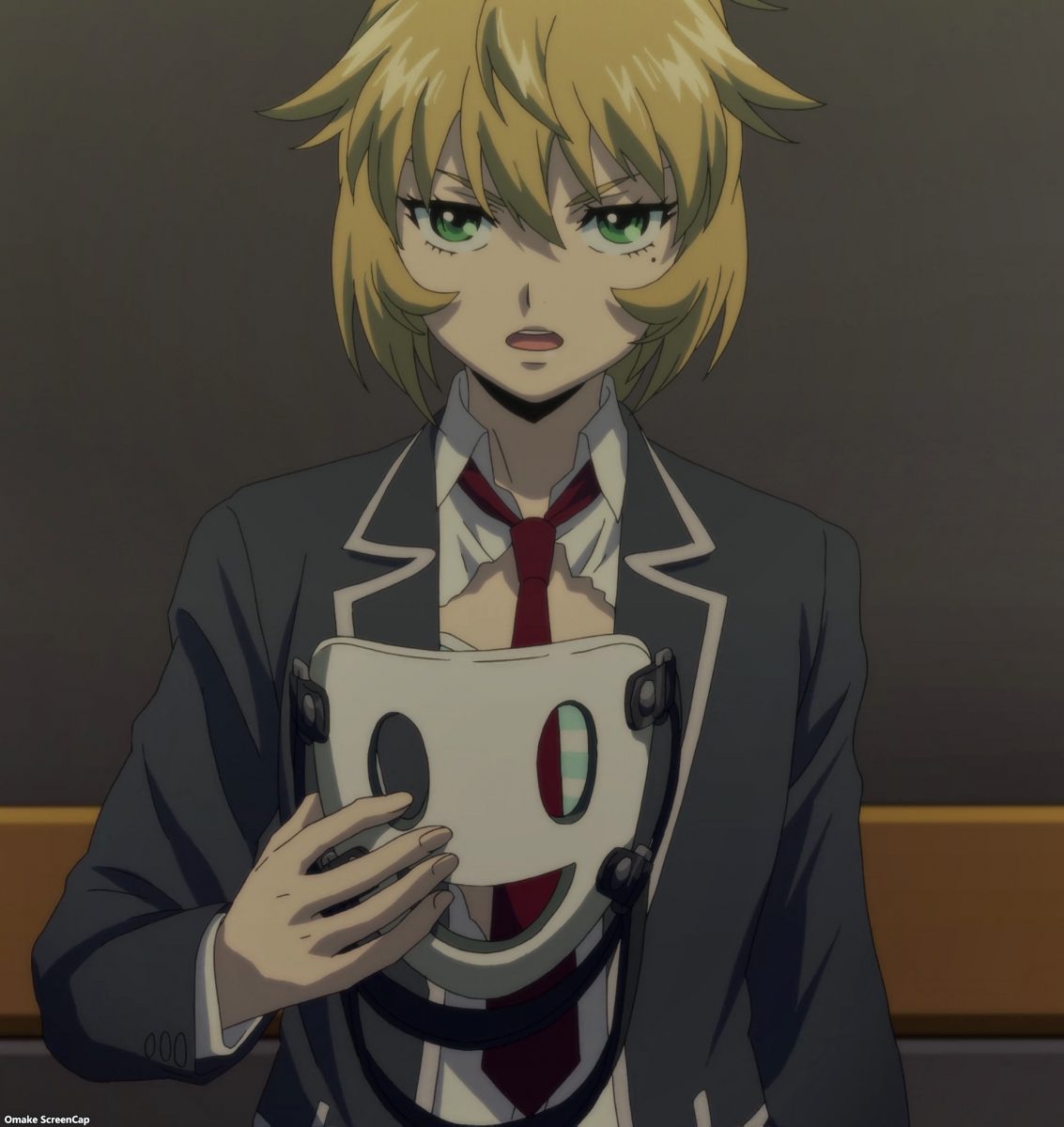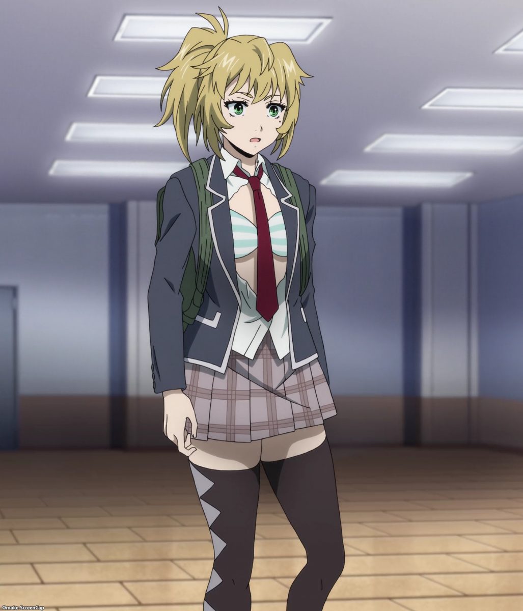 Ah. It’s time for High Rise Invasion to set up violence and gore. The Chef Mask carries around binoculars, a handsaw, and a bag full of bloody body parts. He’s the Big Bad according to the Netflix splash screen. This guy didn’t lose his personality at all after putting on a mask. Insane cannibal is hardly Angel material, but he’s there to “bring people closer to God.” One way or another… Hoh. Rika “gave” Yuri to Mayuko for protection. It’s like they’re engaged now!