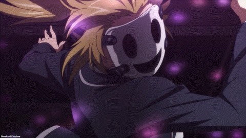 Nice suspenseful cut to the Almost-God-Almost-Angel Duo by High Rise Invasion. Sniper Mask also wants to stop looking at Kuon’s panties. Stingy. And suddenly the disco ball turned on for some reason. Interesting. Rider Mask can talk to the Command Voice. His mask is a “jackpot,” all right. Mayuko is technically an Angel now. Oooh! Mayuko attacked Rider Mask, not Yuri! One Punch Mask became One Arm Mask. What is going on here? Mayuko must have put on the Chef Mask! She’s going to be okay! Rider Mask, not so much.