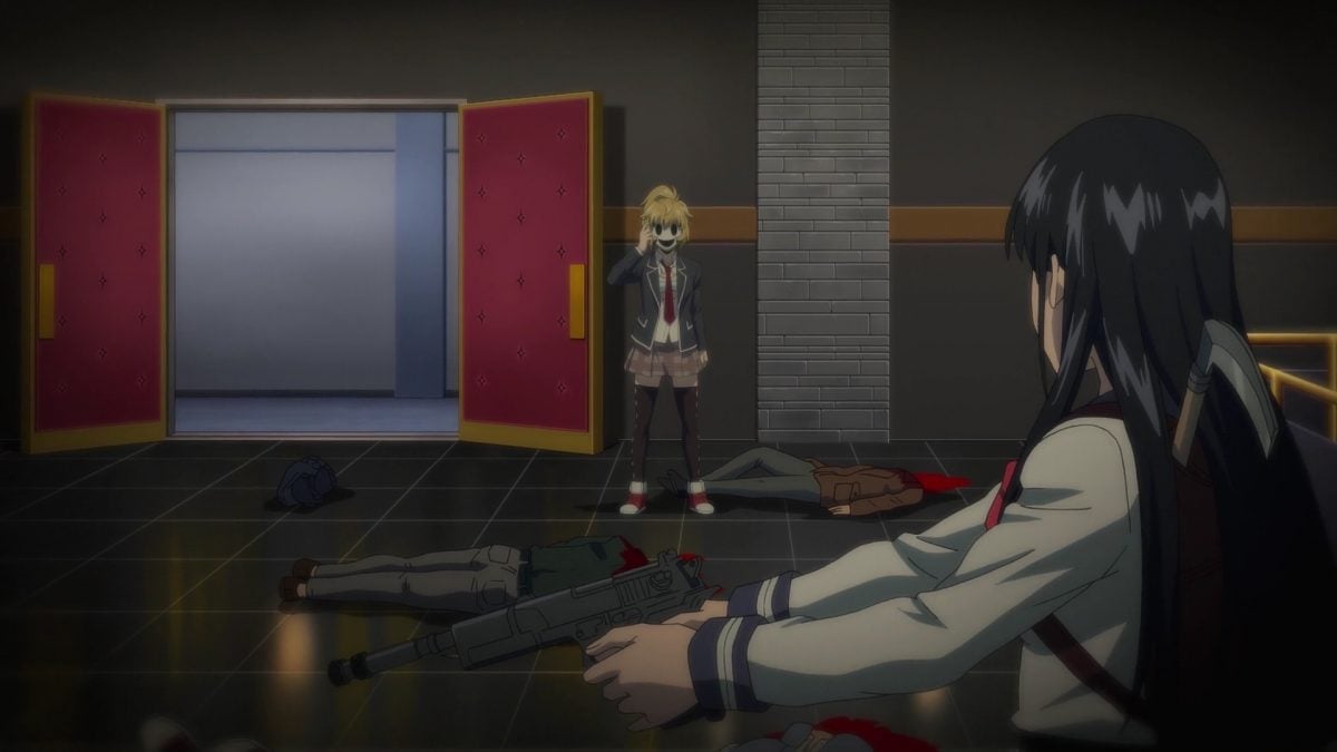 These Netflix splash screens for High Rise Invasion have fun foreshadowing. Yuri likes watching Mayuko sleep. Yuri romance develops nicely during their first sleepover. Weird. Backpack Mask deposits a backpack full of supplies near Yuri and Mayuko. There are different Angels here. Backpack Masks don’t smile or frown. They’re neutral.