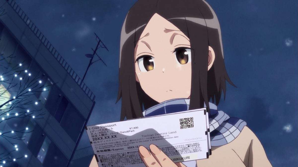 Whoops! Satomi almost gave away her cosplay plans for Winter Comiket. If you can, check out that QR code on the ticket (click image for bigger). That’s a fun Easter egg. She can’t go, so Akemi asks for those tickets.