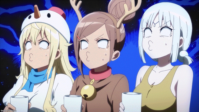 Oh Zina. This is not a Christmas costume. Also, another Kengan Ashura reference. Satomi’s costume isn’t any better, but at least she put on a Santa hat. A Santa hat means instant Christmas cosplay. That’s the rule!