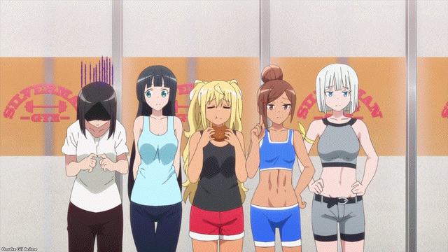 This episode, instead of gainz for strength and fitness, Hibiki is showing gainz on her waistline. That realization brings us back to why she wanted to work out in the first place — to get rid of the pudge and to get a boyfriend. Uh, she didn’t make any gainz on that latter part either. Christmas in Japan is a time for couples and dating, so it’s the perfect vehicle for Hibiki and her lonely friends to find that motivation again. I loved how the Christmas party plot surprisingly pivoted to Akemi’s character, built up an expectation that just maybe she was interested in romance alongside her love of muscles, and then dashed those expectations by confirming her personality. That’s just good writing.
