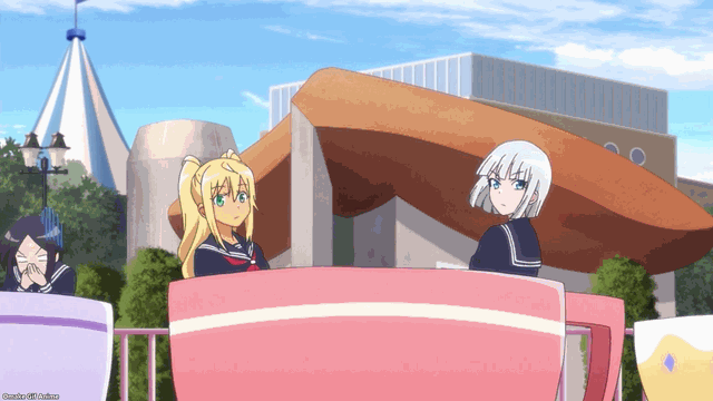 Ah haha! Satomi thinks she can still pull off looking like a high school girl. This is an expensive stalking mission. Keep your comments to yourself, Mockey Mouse! This is all regular date stuff. Could it be, could it be? Ah. I see Satomi getting sick on the teacups. Oh, come on. They’re building this tension up, but those heartsy eyes from Akemi gave it away. Muscles are involved.