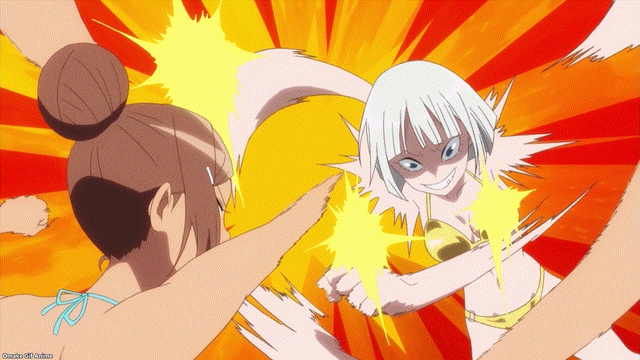This week, Dumbbell gave us an almost pure slice of life comedy with absurdist elements. Zina’s integration into Japanese life with her new classmates and friends was the setting, but it was her jumbled knowledge of Japanese pop culture that was the catalyst for crazy times culminating in the strangest idol group audition ever. There were many throwaway jokes for the otaku and Akihabara fans. The ultimate of the absurd was Macho Man himself, who confirmed that he is the muscle-bound magical mascot of the whole city. He can overhear conversations from miles away, as long as it’s fitness related, and he doesn’t just break the 4th Wall. He leans his elbows on it! It’s a bit sad that the bikini scenes with the kendo mask in the end credits did not correspond to another sexy swimsuit episode. I suppose we can’t have cheesecake all the time. Today was not a cheat day.