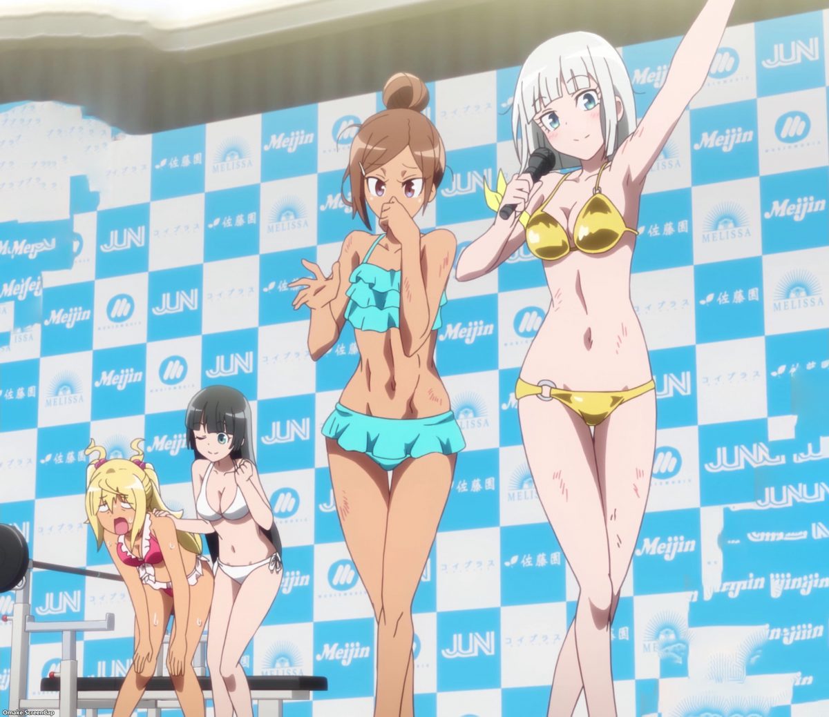 Gah! Macho Man is just sitting almost naked in the crowd. We’ve reached ludicrous levels of slice-of-life comedy. What kind of idol audition is this? Sparring and bench presses? The girls are definitely not shy.