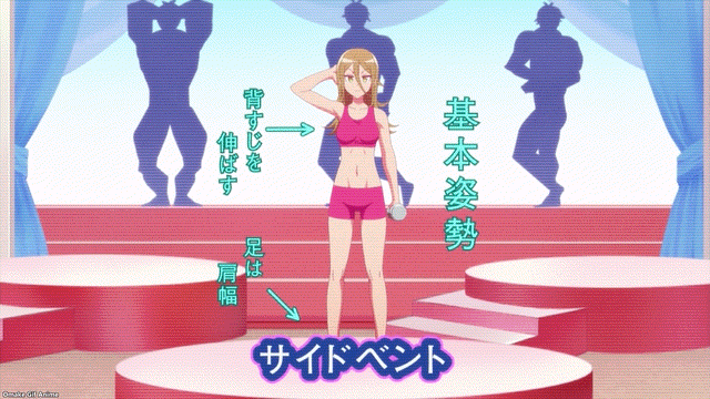 Exercise video on side bends. With Aina-sensei as the sexy exercise model! Somehow, I prefer the underboob version from the manga…