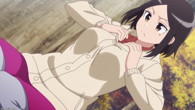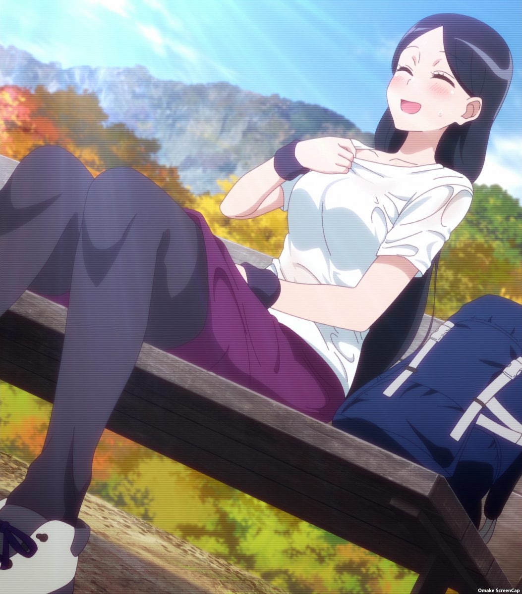 Yay! Field trip to a haunted mountain! Lots of “probably’s” to describe this “safe” hike. Akemi and Zina are in great shape running up this hill, but the usual suspects are struggling. Aina-sensei too. Hibiki is just hungry, though. Why is Kure-sensei more pissed at Aina-sensei than Satomi? Oh. Because she said, “middle-aged” for a 34-year-old.
