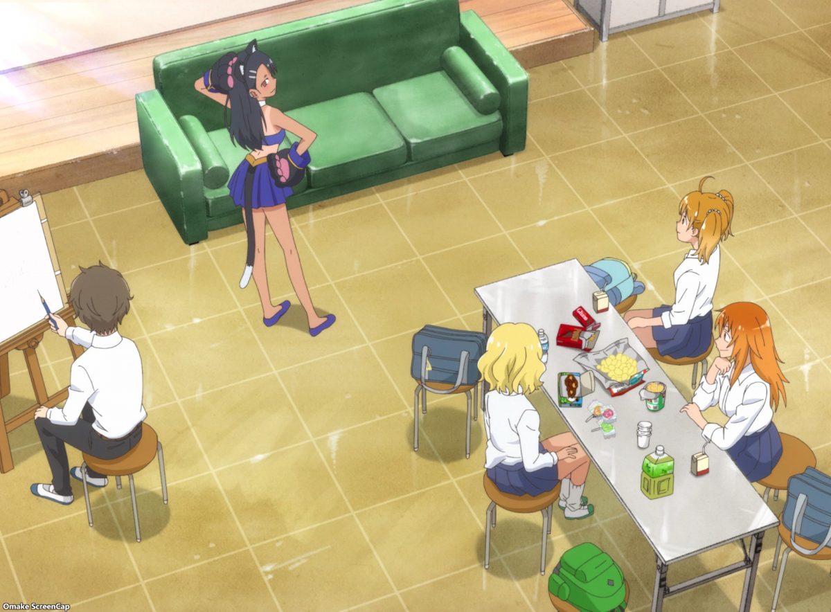 Uh oh! Senpai recognizes those steps on the staircase. It’s Miss President! Hide the slatterns! Miss President disapproves of the couch because it’s new. The snacks on the table look sloppy too. Nagatoro’s friends know which buttons to push. Ex-girlfriend. Older woman. There’s one enormous difference! Boing! Does anyone in the art club have a name? In the Nagatoro-san anime, it’s just Senpai and Miss President. She wants to show a piece for the cultural festival. And she heard rumors about the gyaru invasion.