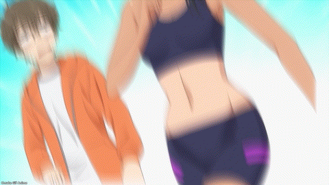 Senpai should be grateful to Nagatoro for ruining his weekend. Look at the benefits! Senpai is now fully awake! Enough teasing. Sports anime time for Nagatoro-san! Ha! Senpai has his motivation backward. He should be running to stay behind Nagatoro, not ahead of her to block his temptation to look. Kudos to the animators on shading Nagatoro’s spandex. I wear spandex and lycra for hours every day, so I can say this sequence is impressive and correct.