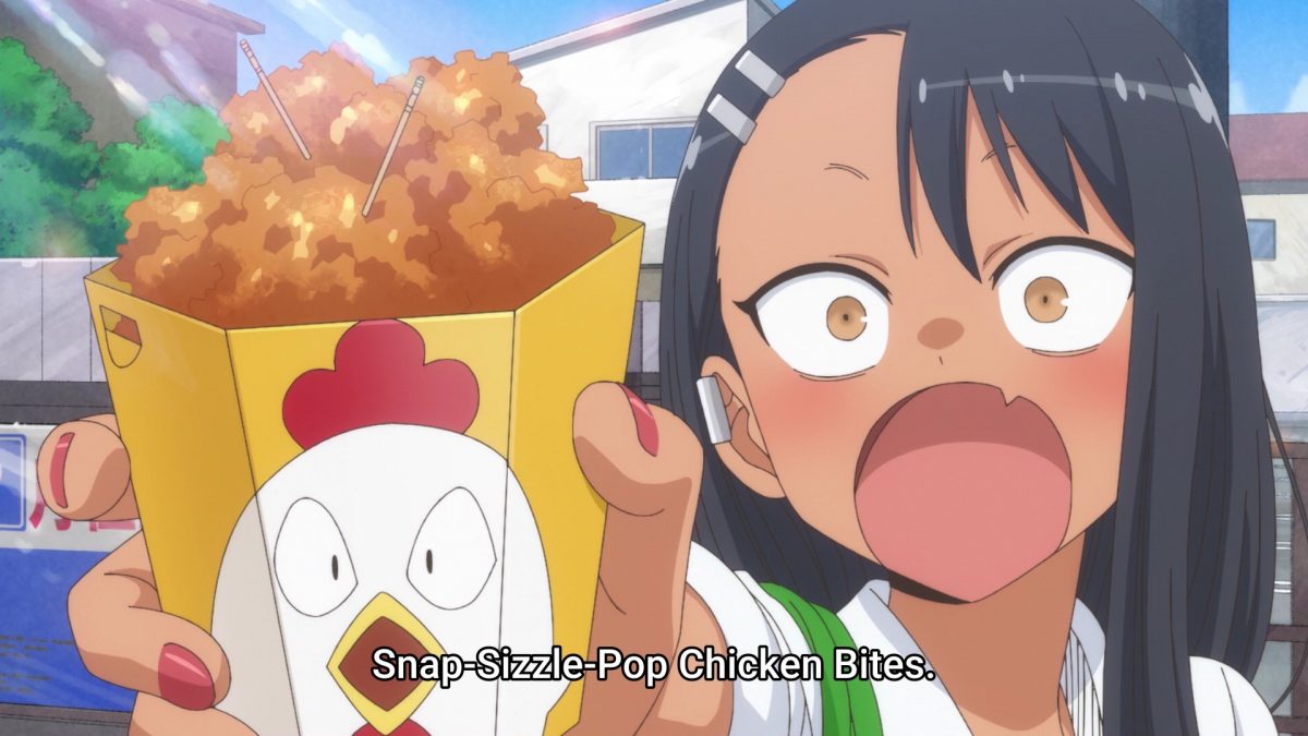 The Nagatoro-san prologue delivers a wordplay joke that makes Senpai think naughty things when Nagatoro merely refers to her hot fried chicken. Now, I’m imagining naughty things…