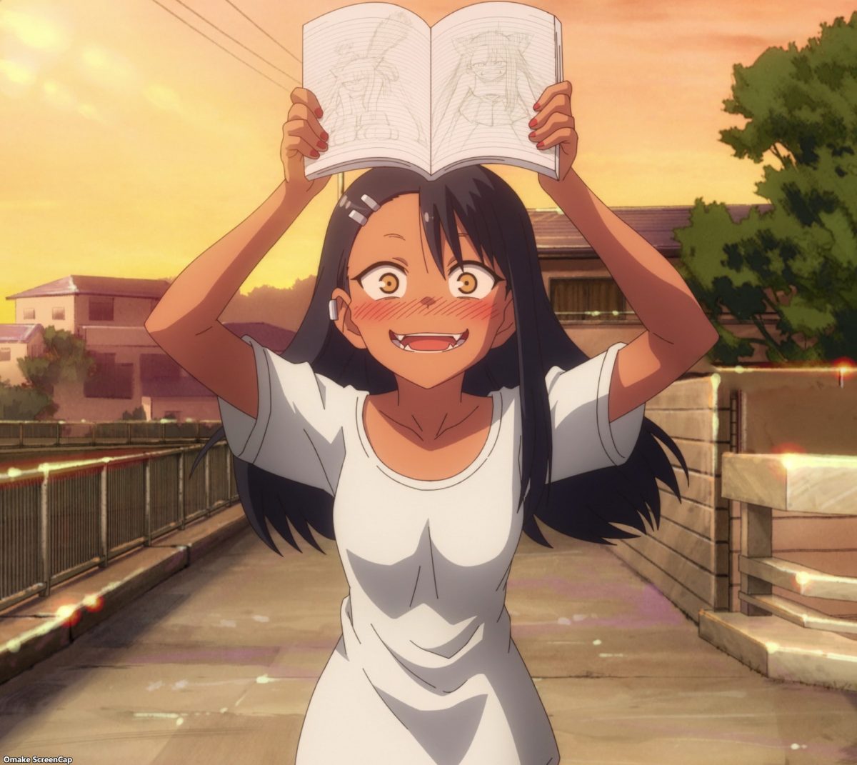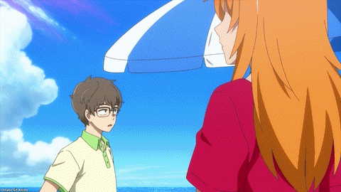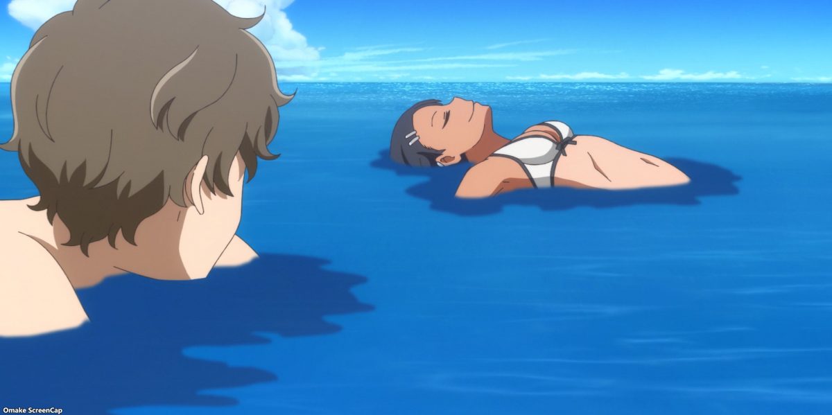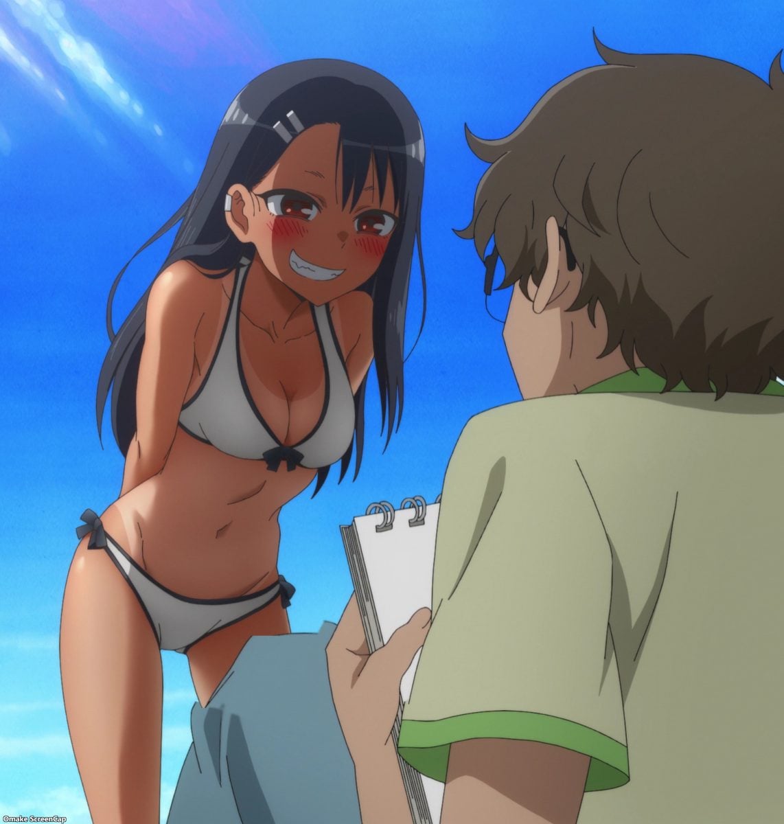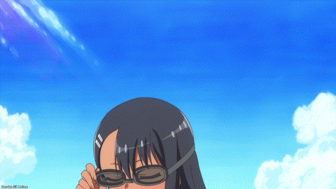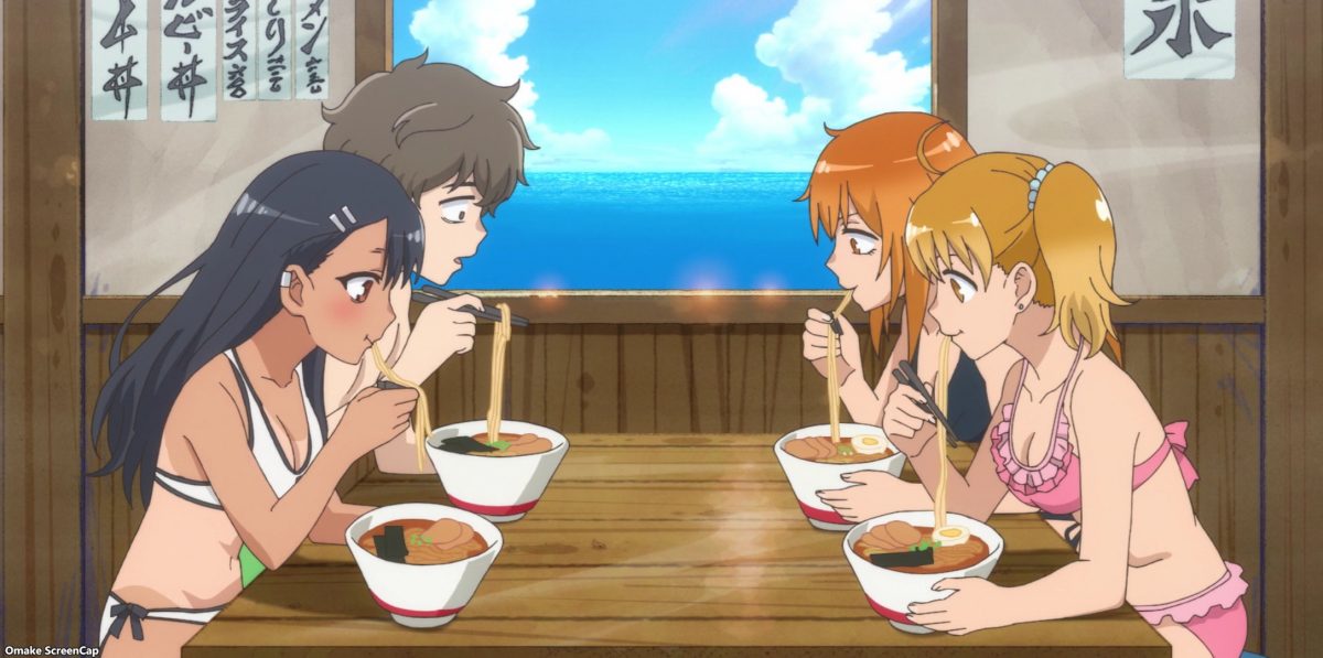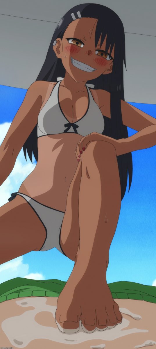 Yes. YES. YES! It’s the Ijiranaide, Nagatoro-san beach episode! Tan gals in bikinis! Tan Nagatoro in a bikini! Tan Nagatoro in a bikini showing her tan lines! Deep breath. Let’s go!