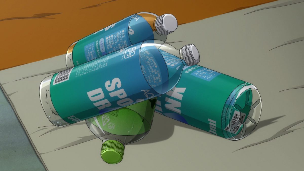 Time for Nagatoro’s special brand of teasing and “rough rubbing.” Ha. Nagatoro doesn’t want to share stepping on Senpai with Yoshi, but Gamo-chan already started. Hoho. The water bottles piled on top of the green tea bottle tell the story. Welp, Senpai won’t get a sunburn now.