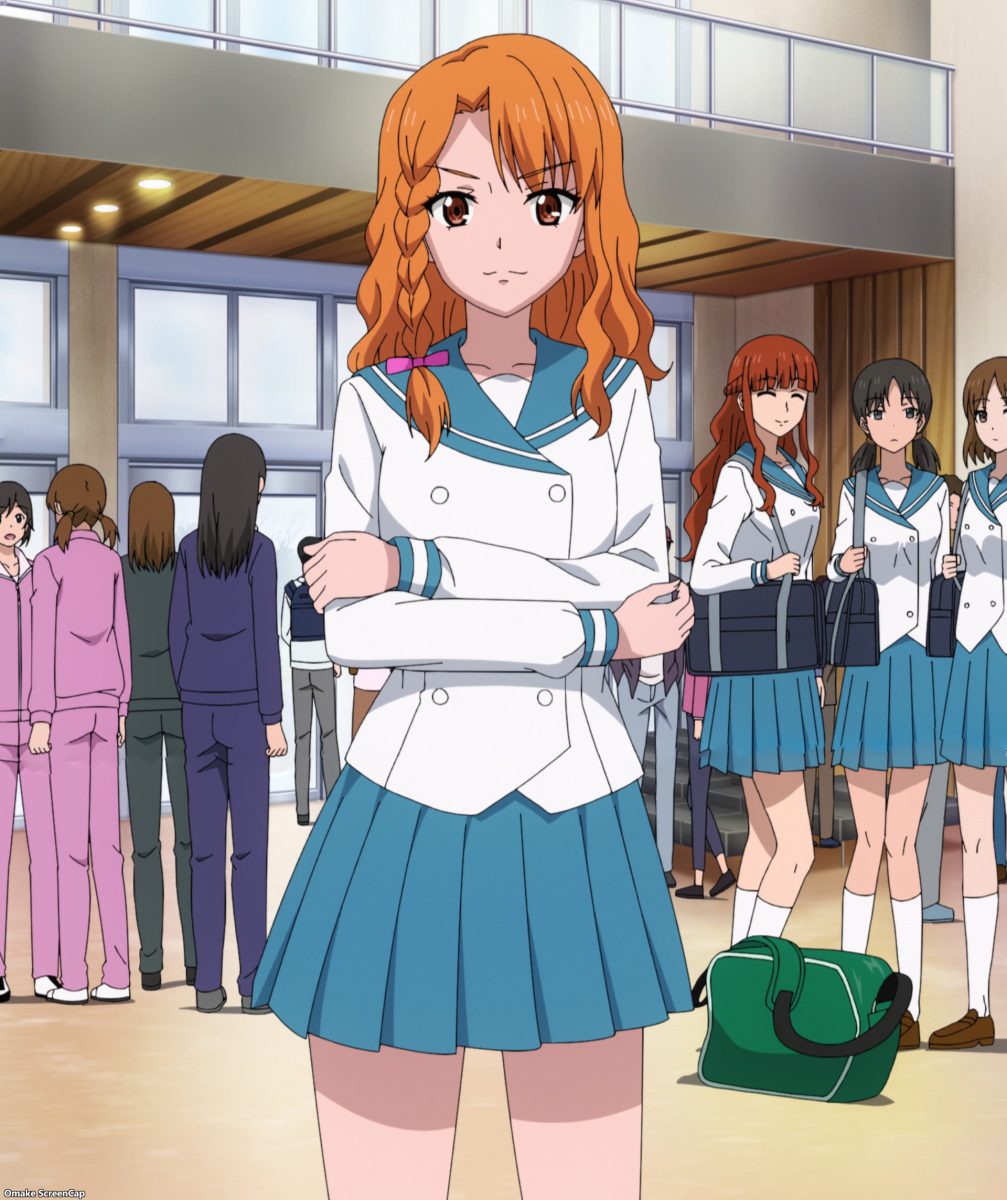 The Combined Japan High School Cup. Oh ho. Icky boys are here too. A whole season of Iwakakeru! led to this and we never saw Sayo do her famous event of Lead Climbing. Oh well. Those icky boys look Konomi up and down. Icky! Akane seems confident. Ooh. Anne’s team is here, but before she can make a dig at Konomi, Mimu got there first. Yay! Cute friendly rival girls are why I watch cute girl sports anime. The other Kanto powerhouses are here too.