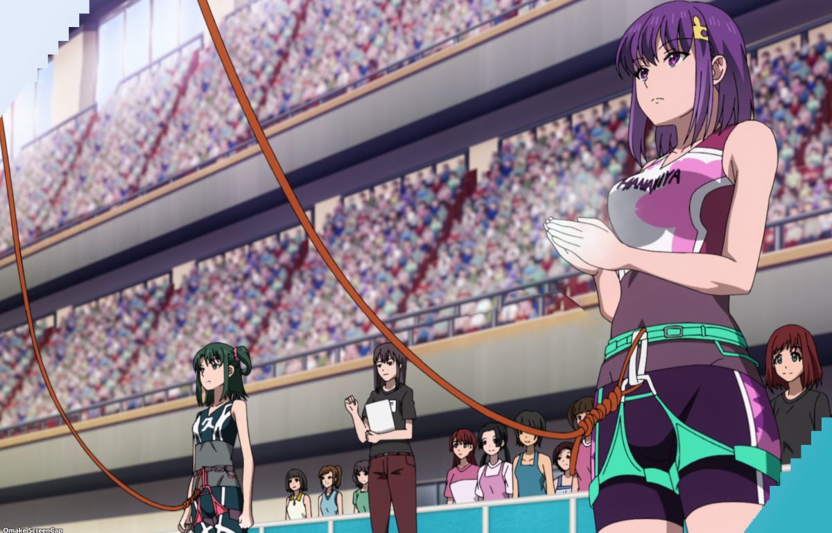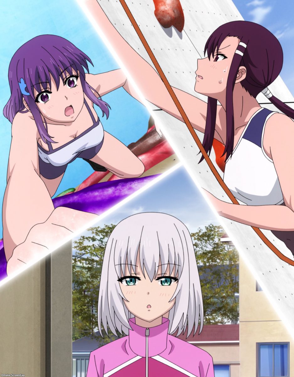 Nakata breaks down from the power and beauty of sport climbing girls. Not creepy! Just emotional. Mimu is a nice girl, but now comes the extra drama in Iwakakeru!. Konomi learned she’s from the same high school as Anne Kurusu. And that demon girl is faster than Mimu. Anne’s a pro climber, so that’s not surprising. It’s just news that Hanamiya has a tall wall to climb named Kokureikan High School.