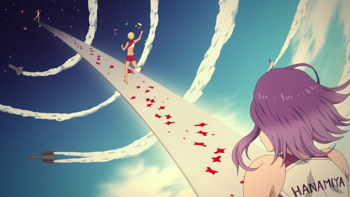 Konomi went right up to the new blonde girl and asked her questions. Konomi doesn’t follow the squishy shy girl anime rules. The new girl in Iwakakeru! is friendly! And nice! She likes Konomi’s gold puzzle piece hairpin. She likes compliments. Mimu Takahashi will tell Konomi her speed climbing secrets. Fun! She treats it like a rhythm game! Now she’s talking Konomi’s language. It’s the puzzle piece Konomi was missing. How can she connect the speed wall sprinting to her gaming perspective? It’s a rhythm game! The bigger question is what music will Konomi have in the background? I know at least two songs will be on repeat. The opening and closing theme songs for Iwakakeru! are out.