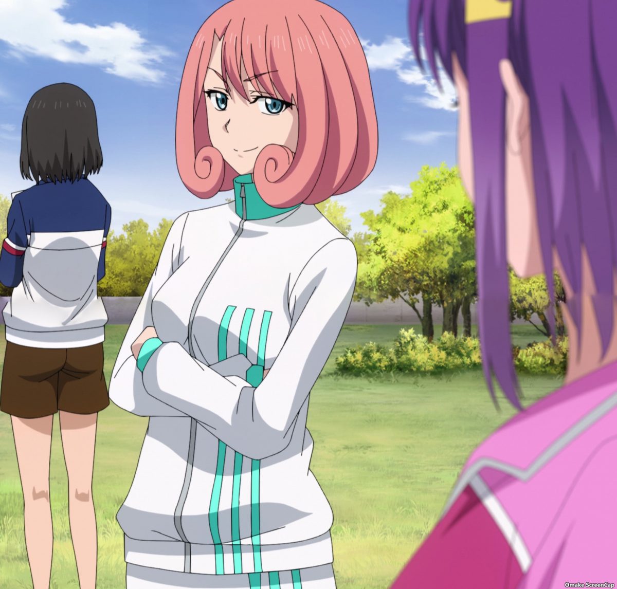 Nonoka’s so happy to see Konomi and Jun again. Konomi and Jun had a good training camp. Nonoka did not have an enjoyable time with Sayo. Un-possible! Hot teacher Sayo looks very enjoyable to be with. Please, Iwakakeru!, give us more hot-for-teacher Sayo-chin scenes! Oh. Kiku-chan is here too. She’s observing the climbing team before the Combined Cup starts. That’s a heck of a commute from the Anti-Monkey Rock’s town, isn’t it?