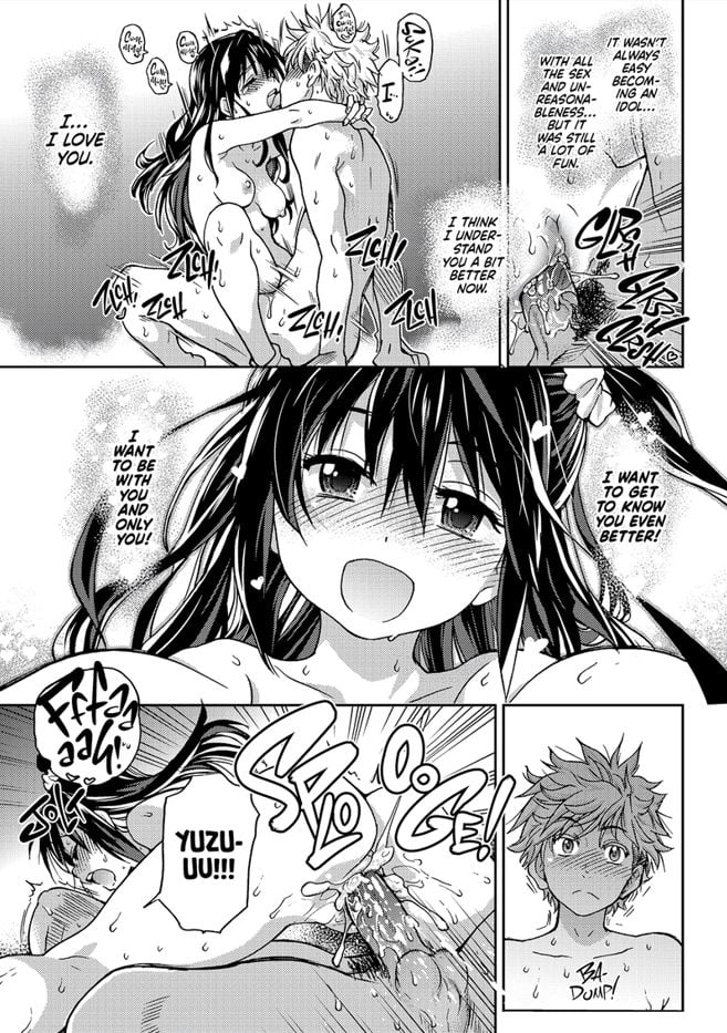 For anyone interested in seeing idols doing idol things, instead of being seduced into working and then barely performing, there is a bonus chapter focused on idol events. It’s only vaguely related to the main story. But a guy gets with the hardworking idol he admires, and in doing so, helps her relax. It’s cute, focused, and romantic, so no complaints.