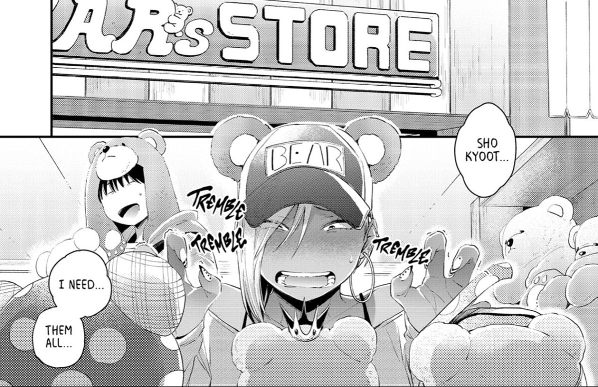 • A gyaru who dresses her childhood friend up in bear costumes because she loves teddy bears, and declares: “I don’t wanna suck off anyone else.”