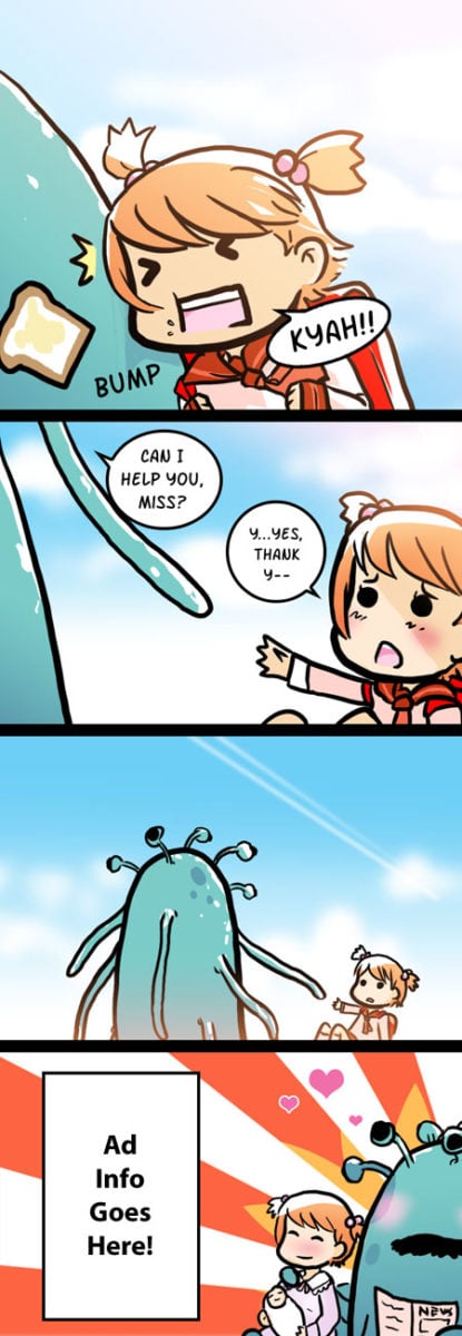 The game being parodied/referenced in this first comics is Hitomi My Stepsister, a fun title about a main character whose father remarries, which gives him a cute stepsister. Poor Hitomi seems to have accidentally warped to the fantasy world of Brave Soul.