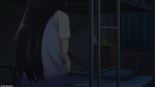 Ah. Here’s the other side of Jet Girls’ main pair. Misa wakes up alone. Boo. This morning Jet Race training routine looks like a habit she can’t quit. After school, she got frustrated at the simulator’s experience. Either the AI didn’t pilot the machine properly for her shooting style, or the course didn’t capture the full experience of the Kanda River. That blowing fan is a good touch, which reminds me of indoor turbo training for cyclists. I noticed how she had an empty bunk in her room. That’s the introduction to Misa’s drama! Also, that must be a tough training machine. Ouch!