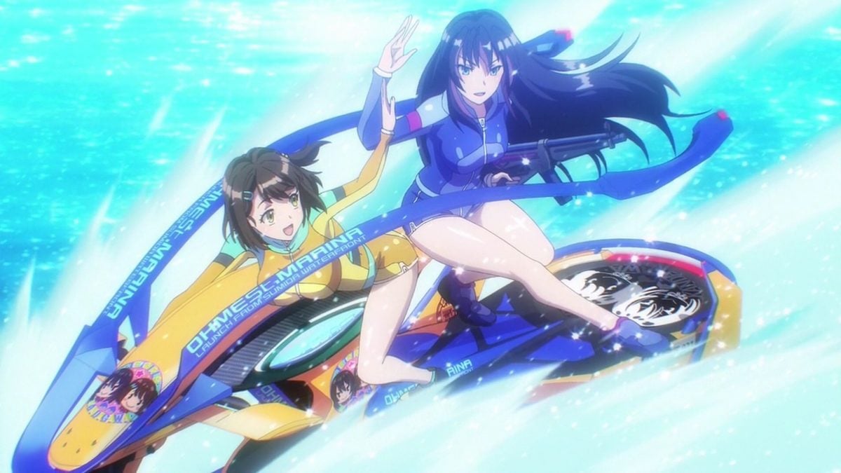Yeah! Busty girls in tight outfits bouncing around a river in a made-up sport is just the kind of summer show that… wait, it’s fall already? Okay, so Kandagawa Jet Girls is busty girls, with sad pasts, in tight outfits bouncing around a river in a made-up sport. Serious sports means serious anime, right? Well, this isn’t really a serious sport if it’s strip laser tag on a tandem jet ski just to remind Japanese people of the Calvary Battle during sports day festivals. Still, the girls have to be fit, need to be flexible, half of them need to know how to ride big machines, and the other half need to know how to handle weapons. It’s a team biathlon, in removable booty shorts. I can watch this.