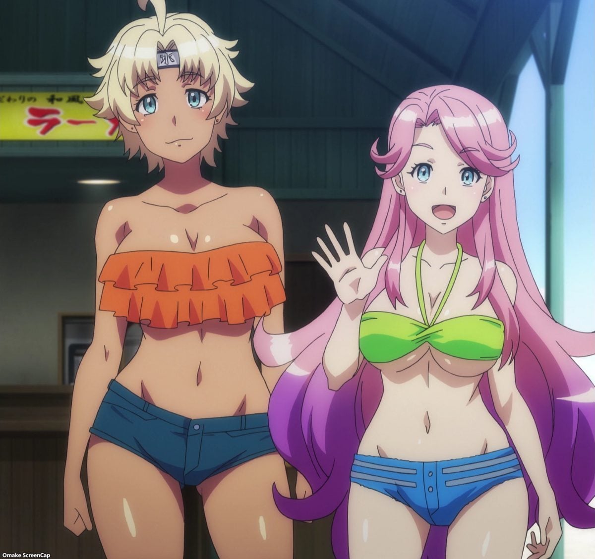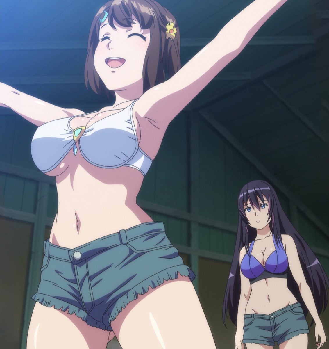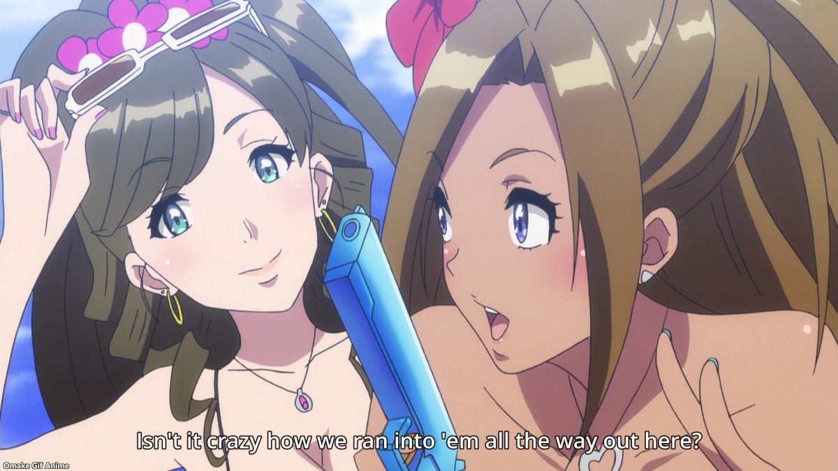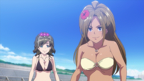 The only small complaint I had for the episode is that we didn’t see the miko girls, Inori and Fuka, in their own revealing swimsuits at the beach. They were the only ones missing! Oh well. They had a lot of screen time last week, so it’s good to share the wealth of fit, beautiful bodies frolicking on the sand.