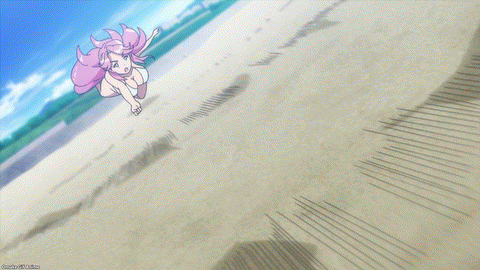 It’s the Kandagawa Jet Girls beach episode! The episode title refers to the great yuri beach volleyball anime Harukana Receive, and boy did it ever. Wow, that was a lot of fanservice. I enjoyed it. I wish we could have seen the fruits of Misa and Rin’s improved teamwork on the Jet Racecourse, but during a beach volleyball tournament was more than enough of a consolation prize.