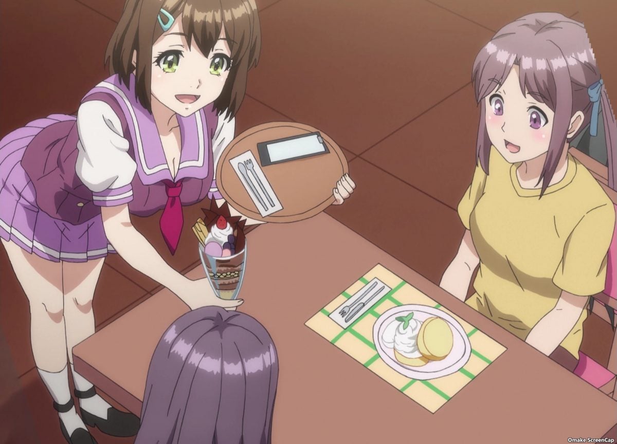 Aha. Manatsu claims to be looking for romance, but Yuzu thinks she’s floating down the yuri river with her already. And here comes Hell’s Kitchen. Something competitive is about to happen. Misa would rather be alone with Rin, of course.