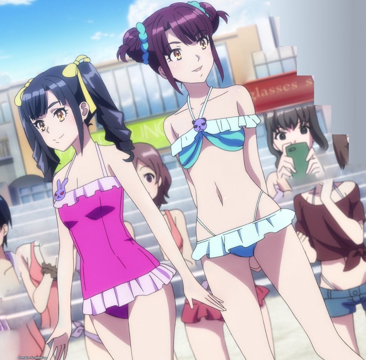 The first Jet Racers to face off are Hell’s Kitchen against the California girls. The flat is justice pair that believes more in revenge against their voluptuous rivals. Manatsu and Yuzu meet Rin and Misa, but things are different than when they played all those carnival games at the water park. Ooh, fake-out.