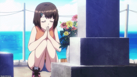 Aw. Misa seems to do alright in finding the other jet racing pairs too. Hanging out with Fuuka and Inori is more her speed than going to idol cafes or karaoke. Oh, so are we ever going to find out if Nyu-Nyu was real or not? I still say it was Kuromaru doing some extra swimming practice. Why yes, it is lonely sleeping alone. Inori knows! Her mind is just as dirty as Misa’s.