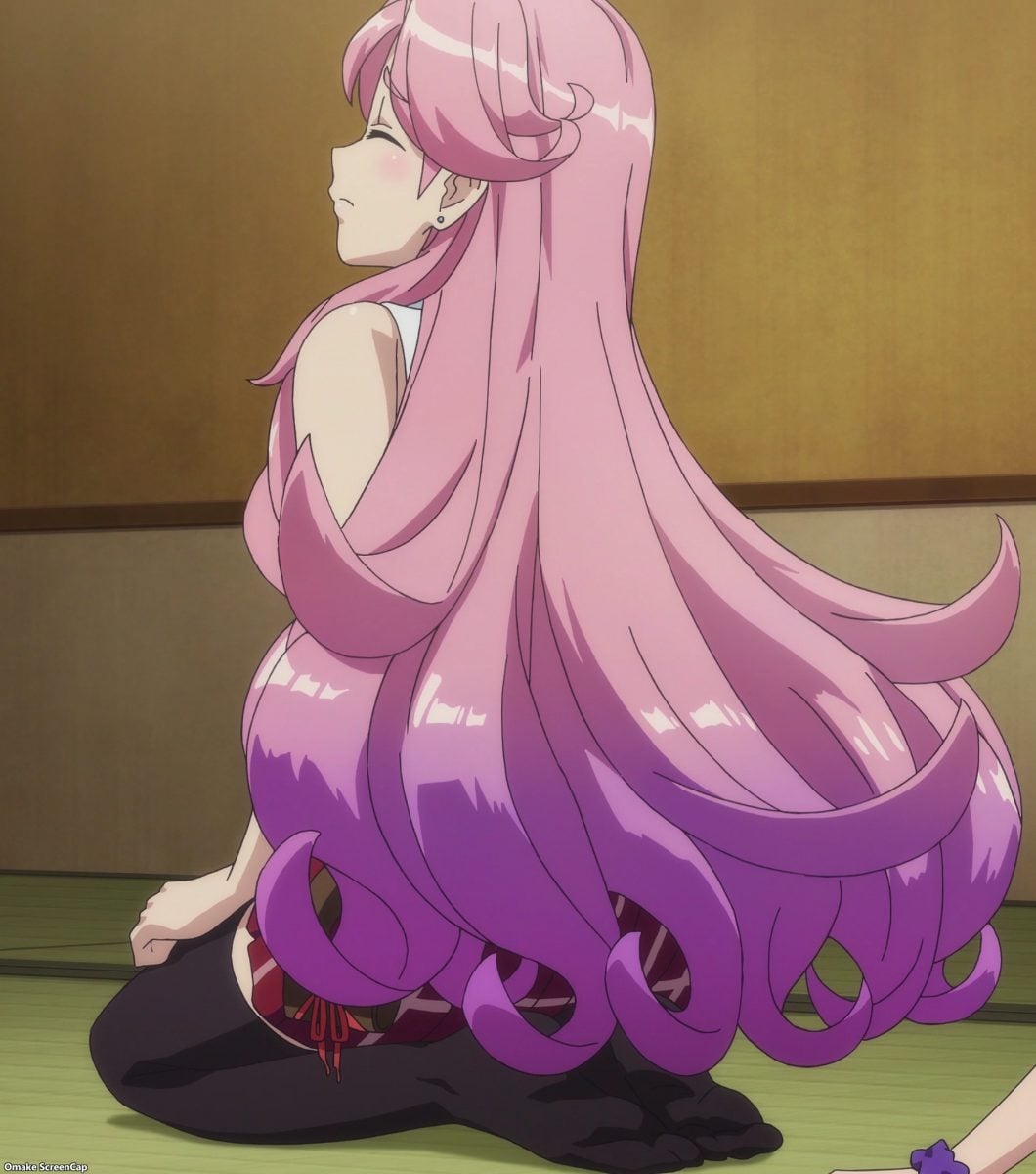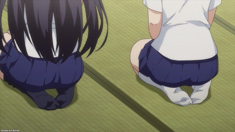 Not sure why we’re doing the tea ceremony with Fuka and Inori. We’re starting to get further away from jet racing, like what happened with the idol twins. It’s the classic foot-fidgeting scene when trying to sit in the polite tucked position. Misa seems able to handle it but her Kandagawa Jet Girls partner Rin has as much trouble as the Americans. Manatsu and Yuzu wanted to catch a glimpse of girls falling over, of course. Not exactly “Cool Japan,” or jet racing either.