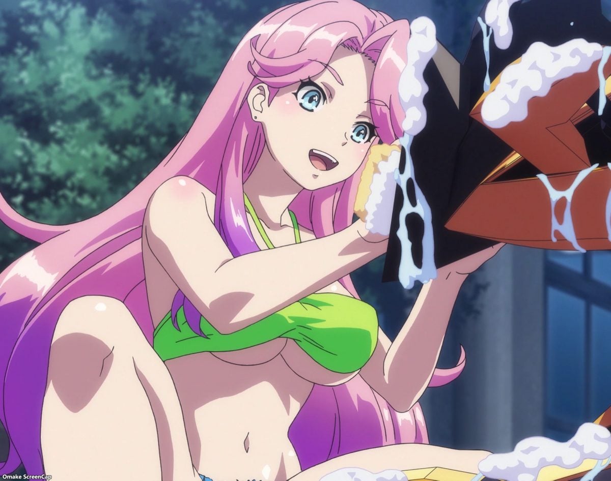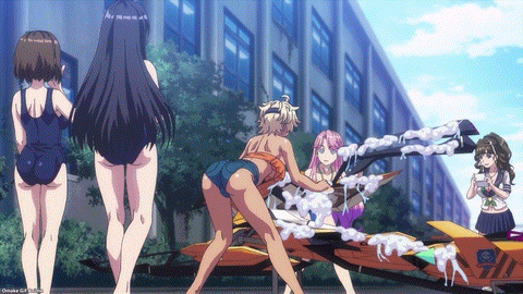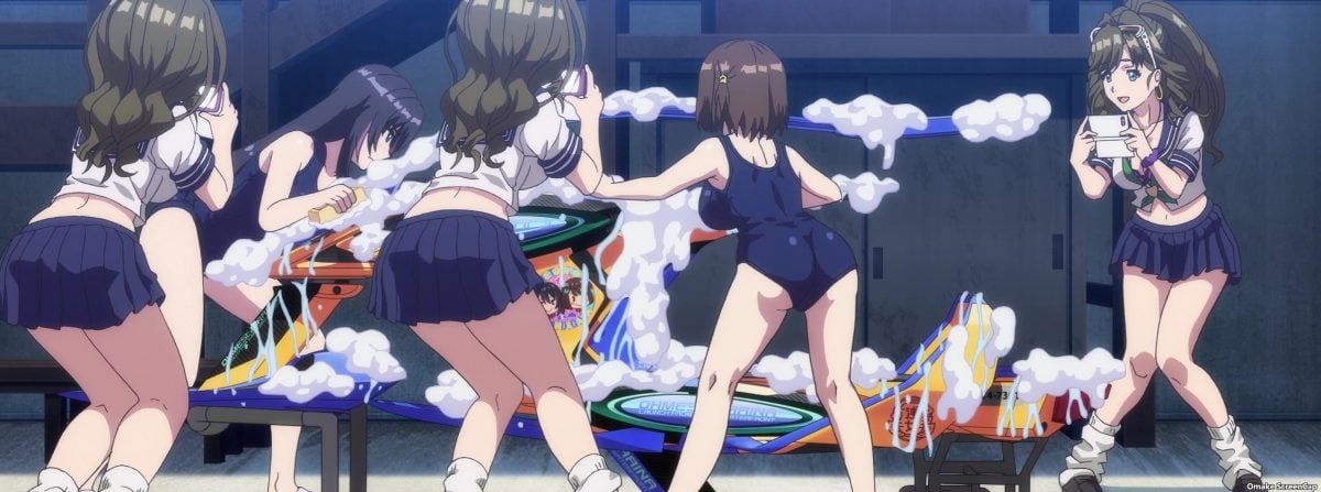 The Kandagawa Jet Girls wash their jet race machines in swimsuits. Yes. Yes! Emily and Jennifer are here too! The Californians were born for this job! Misa had enough of Yuzu’s “direction” for “skinship” with her beloved Orcano.