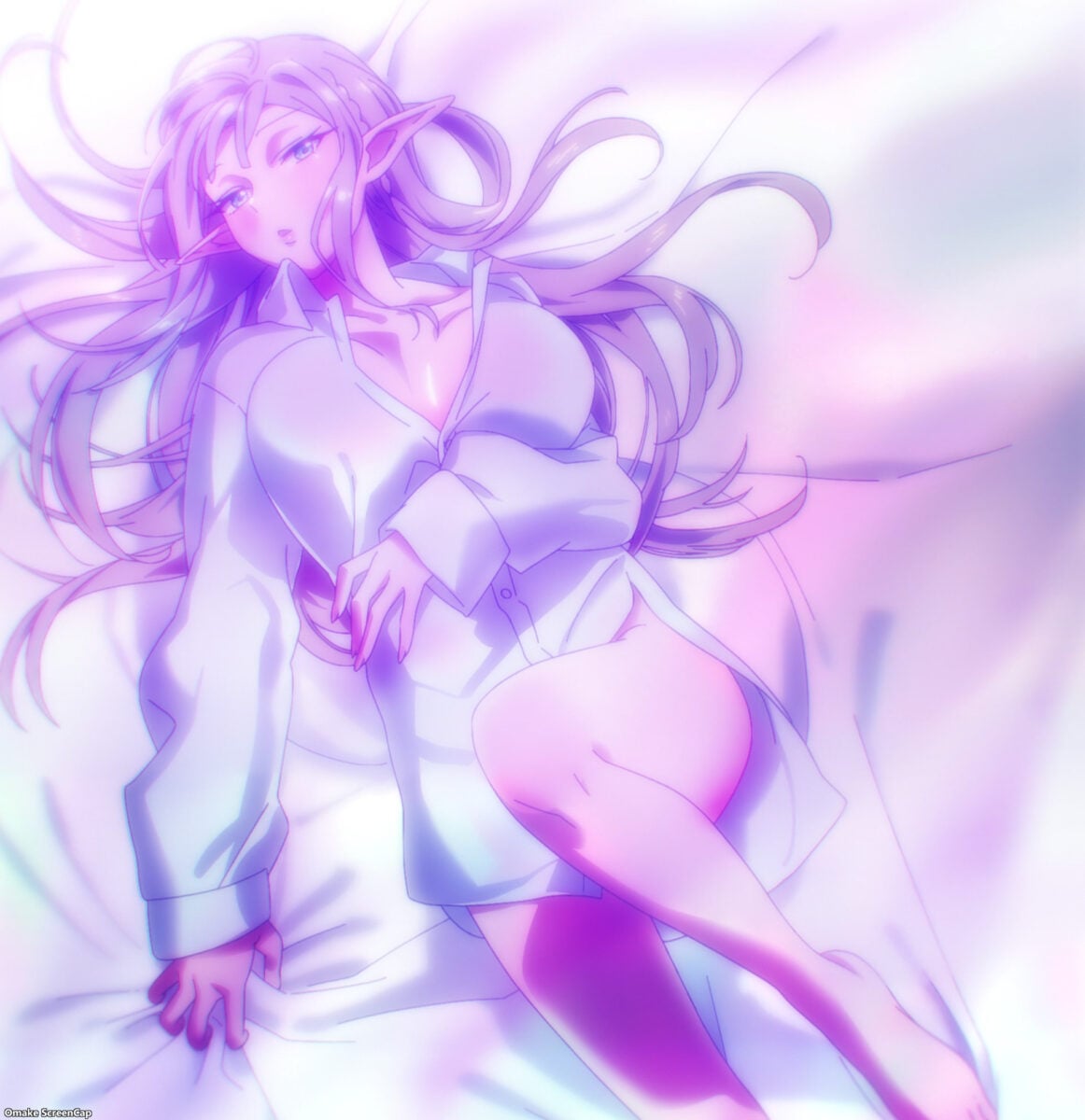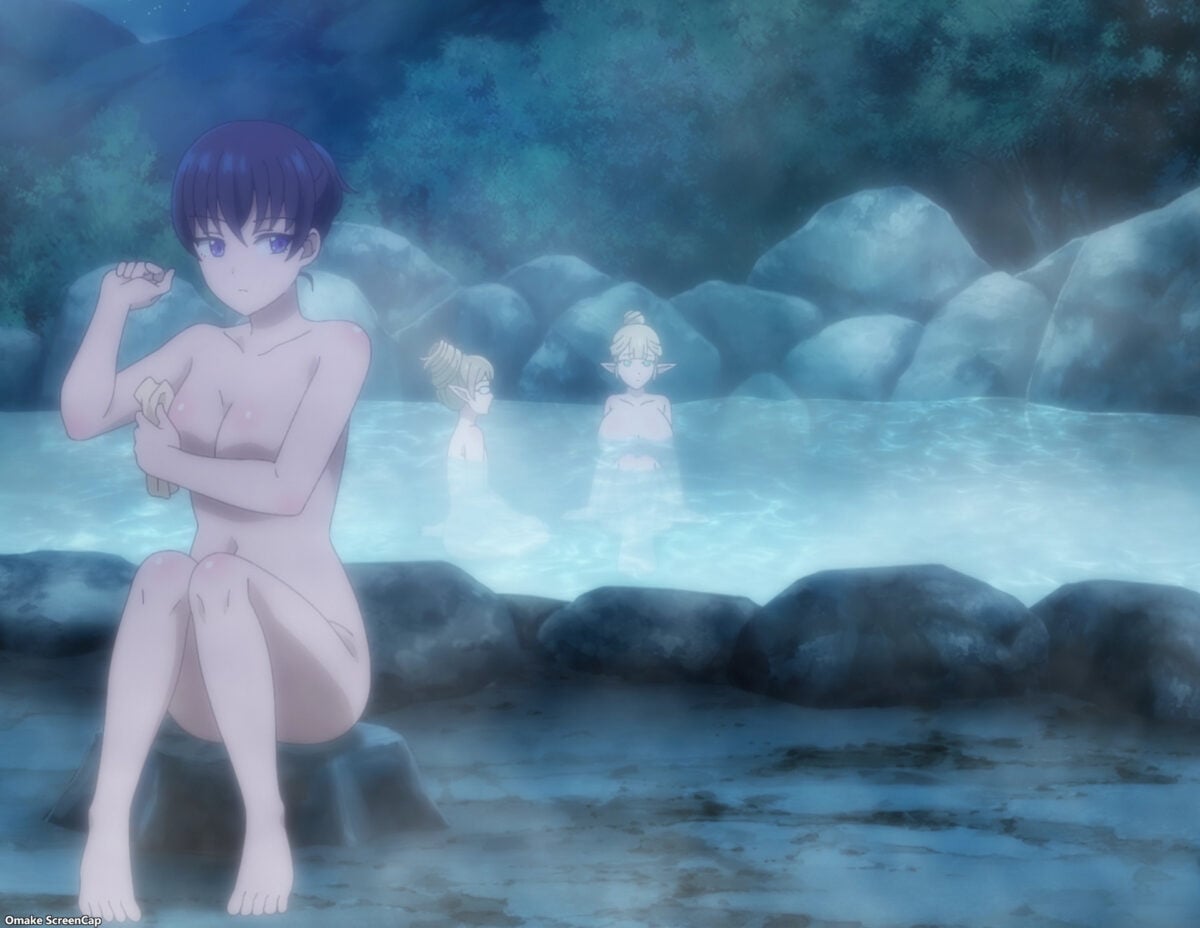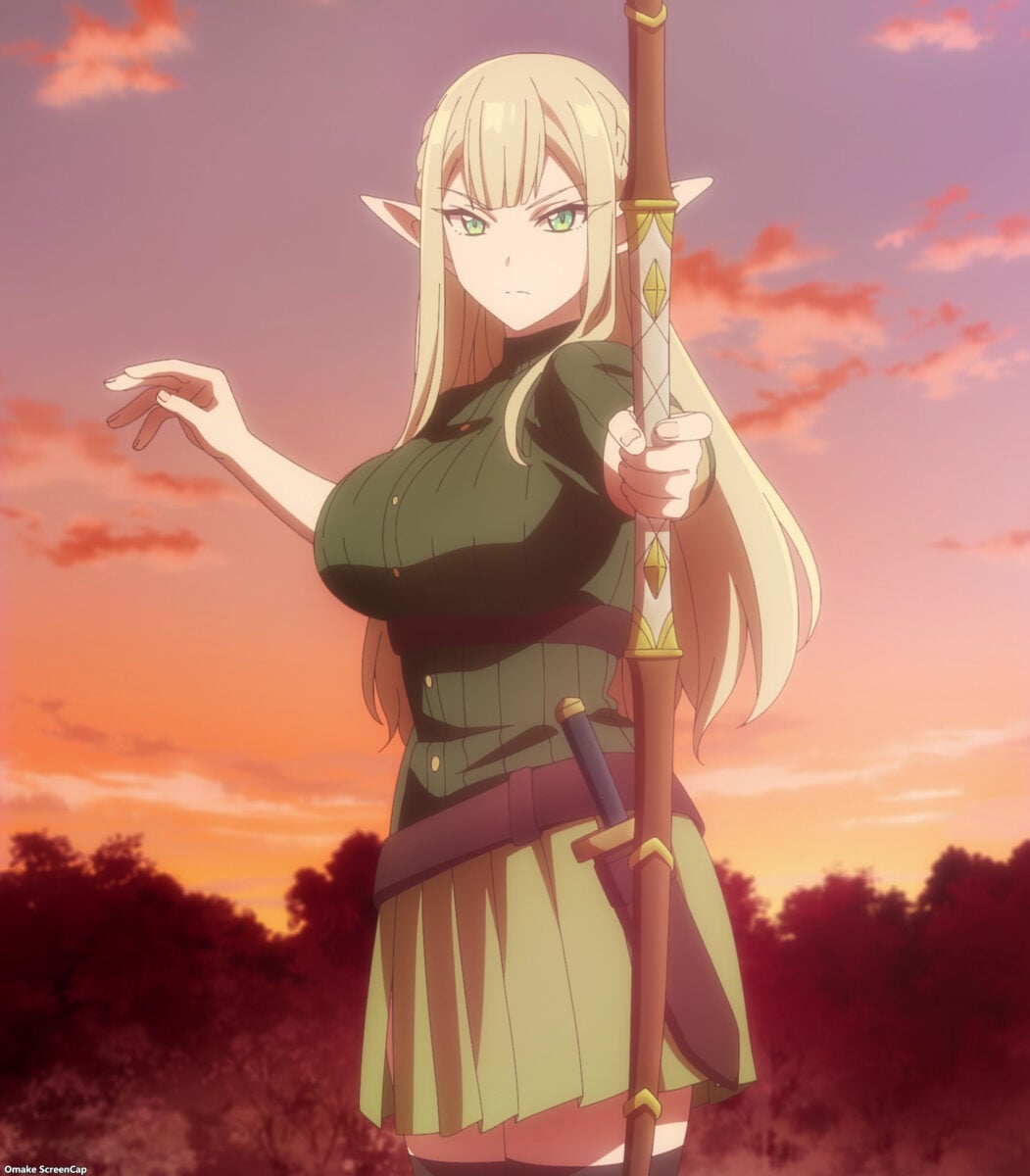 How did Hibiki focus on his status screen instead of the heaving mounds of elven mammary flesh in front of him? I don’t know. But those “twin peaks” are the two eye-popping reasons to watch Kanteishi (Kari). Emalia has a recurring joke of popping the buttons that struggle to contain her bountiful bosom! And her character quirks add a comedic dimension to her role as an oppai fan service machine. Wear eye protection as you navigate her style of blunt speaking, which has rendered her friendless and party-less. That’s right — Emalia, the adventurer elf, has never joined an adventuring party.