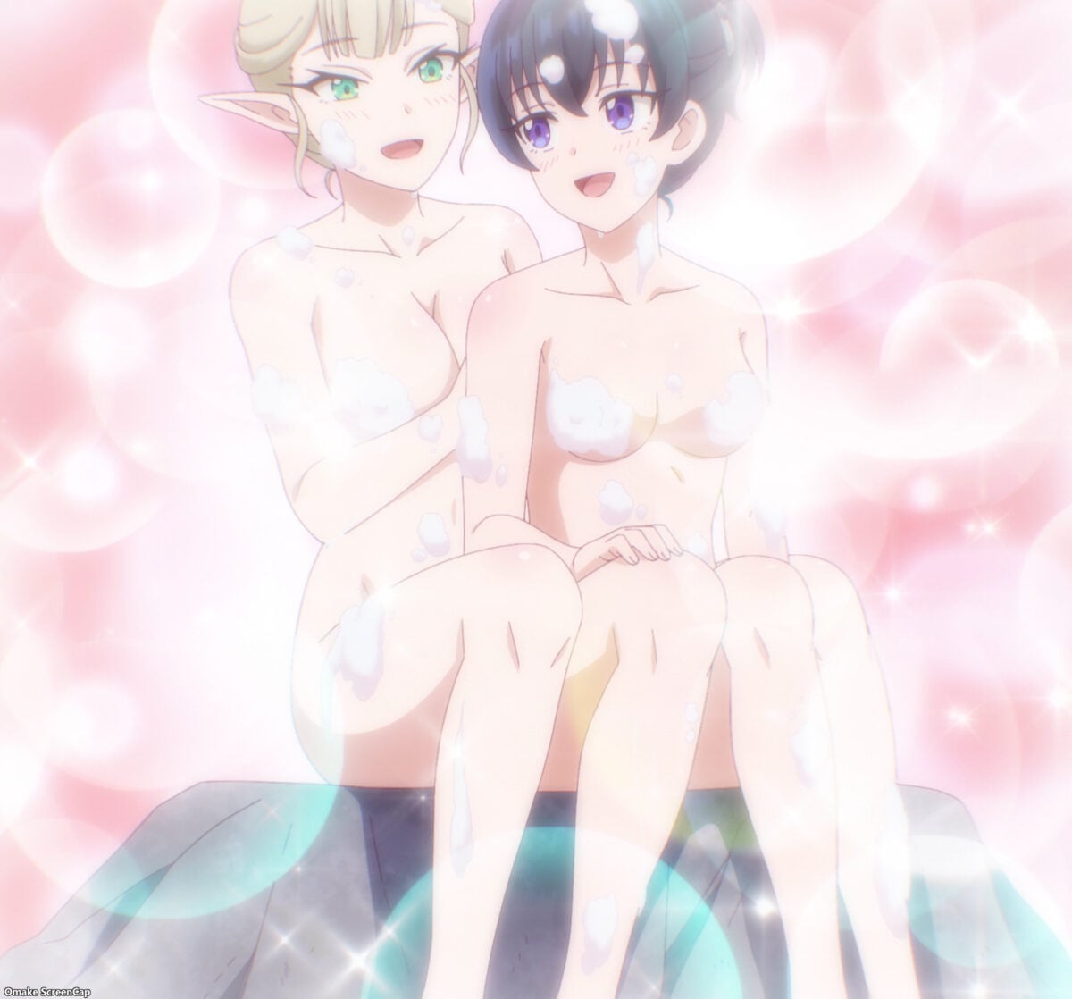 Unfortunately, but unsurprisingly, the fan service in Kanteishi (Kari) will be of the PG-13 variety (steamy and creatively opportunistic censorship) to match its jocular and simple art style. Be on the lookout for Barbie doll anatomy in the bath scenes. Still, all the “twin peaks” jokes surrounding Emalia from her obsessed head maid, Steelia (voice: Sora Tokui — T.M. Opera O from Uma Musume: Pretty Derby), plus the button projectiles, will have you laughing as you ogle barely covered mounds and crevices.