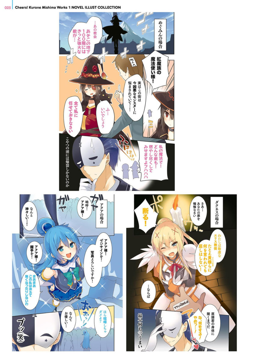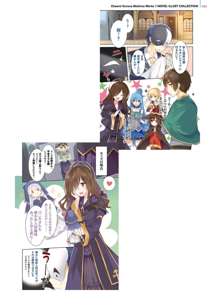 The Kurone Mishima Artworks ~Cheers! KonoSuba: God’s Blessing on This Wonderful World!~ art book can be purchased from our store here.